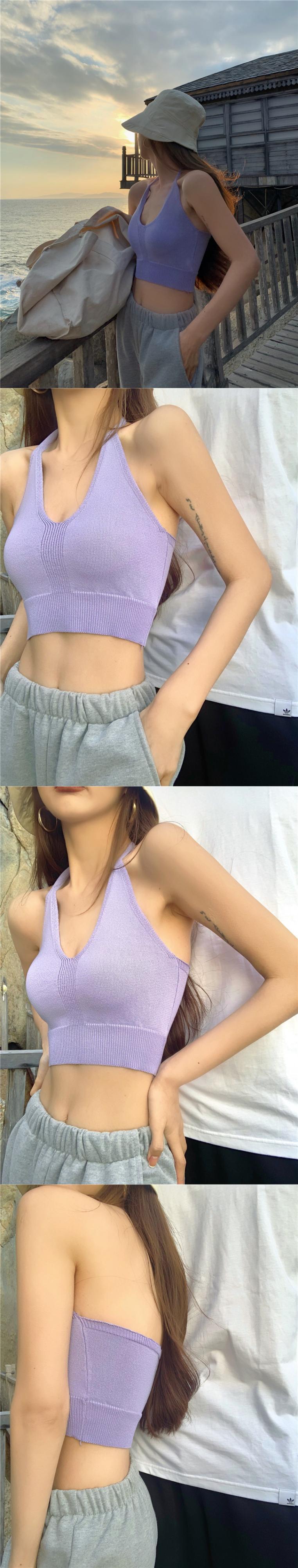 レディーススプリング夏服トレンドニットホルターブルーショートジャケット 春物 夏物 YY7302767220