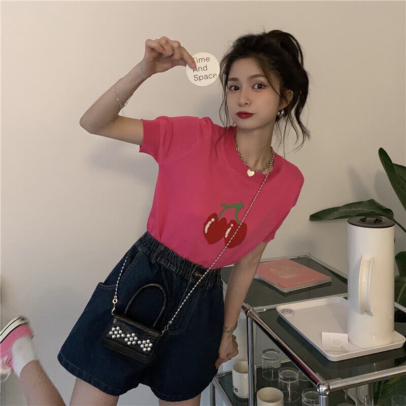 セーター 薄手夏服ショートTシャツトップス トレンド 大人ガーリー スウィート キュート カジュアル 夏物 YY68944893242