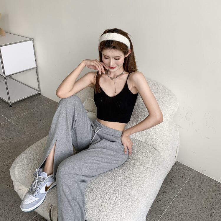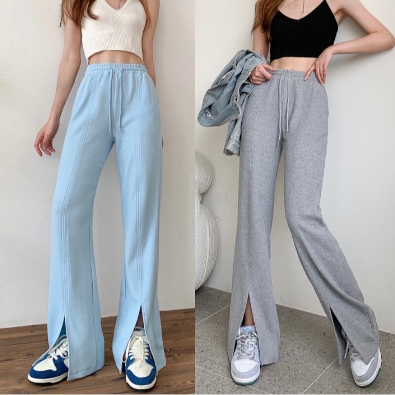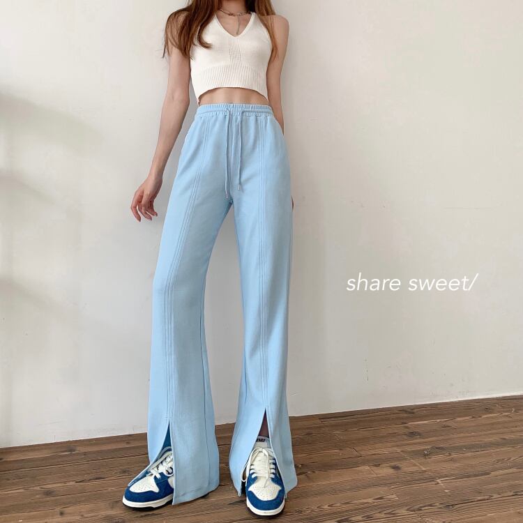 スリットカジュアルパンツ ルーズ夏服ハイウェストスリム レッド 夏物 ウエスト YY86665213518