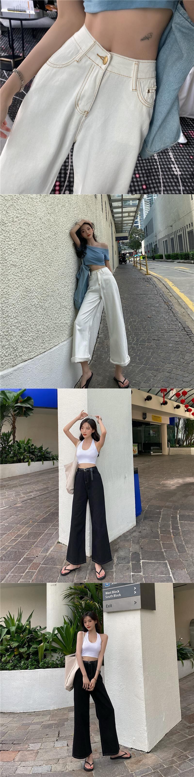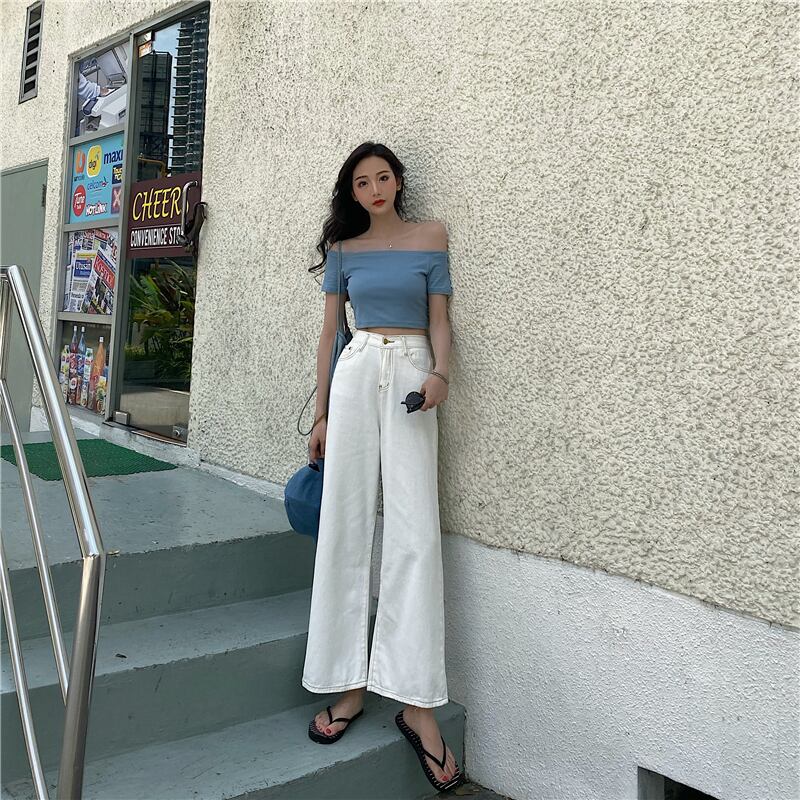 スタンダードハイウェストウェストロング薄手ジーンズ 夏服クロップド レトロ 夏物 ウエスト YY54737729796