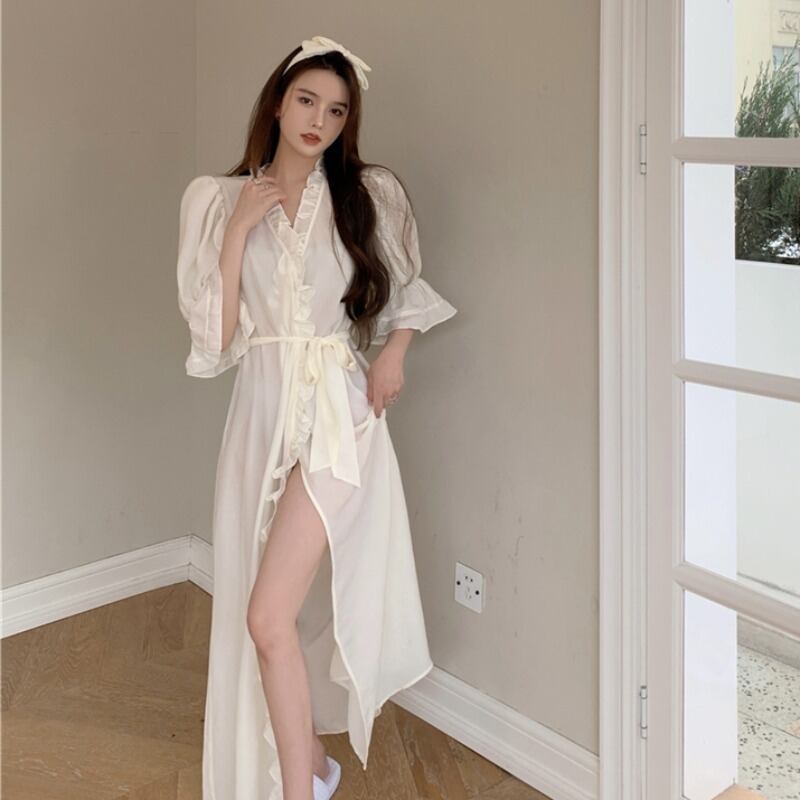 レディース夏服スタイル薄手Vネックロングレース 夏物 ワンピース YY39089729842