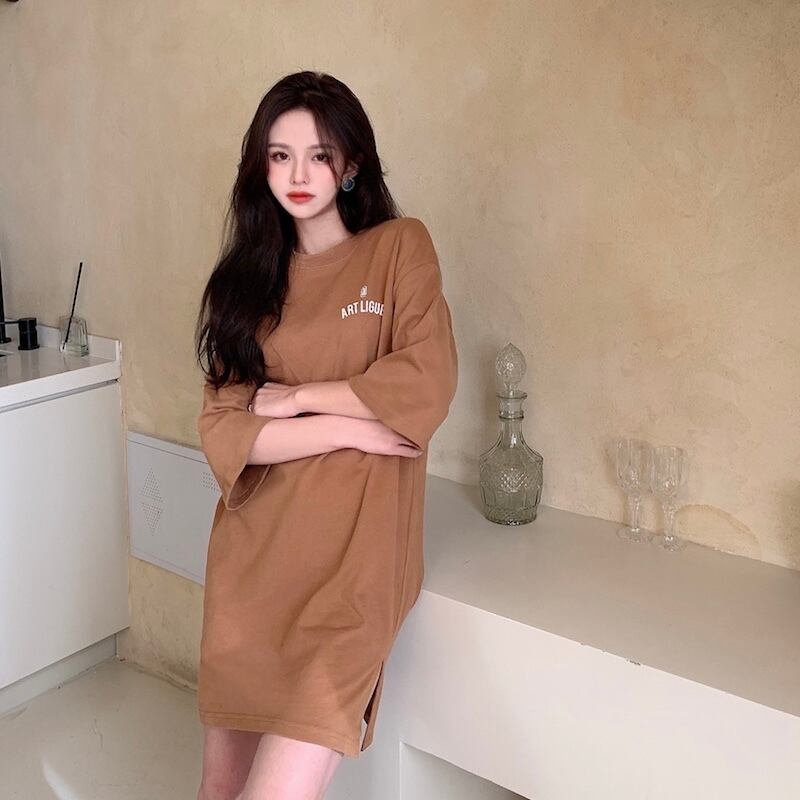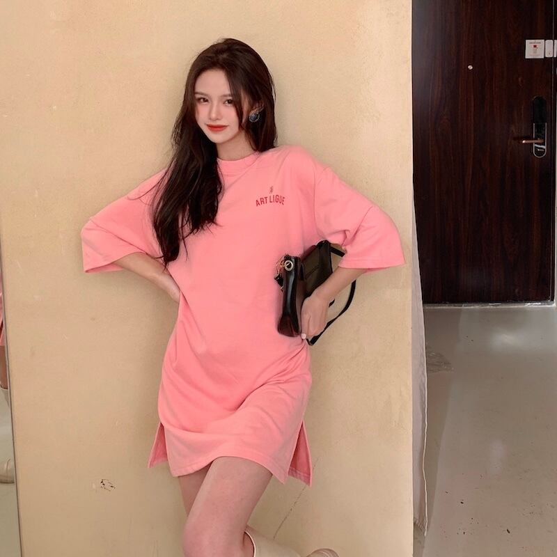 ラウンドネックプリントAラインスカート レディース夏服韓国ファッションルーズ薄手カジュアルワンピース 夏物 Oネック スタイル YY66034004279