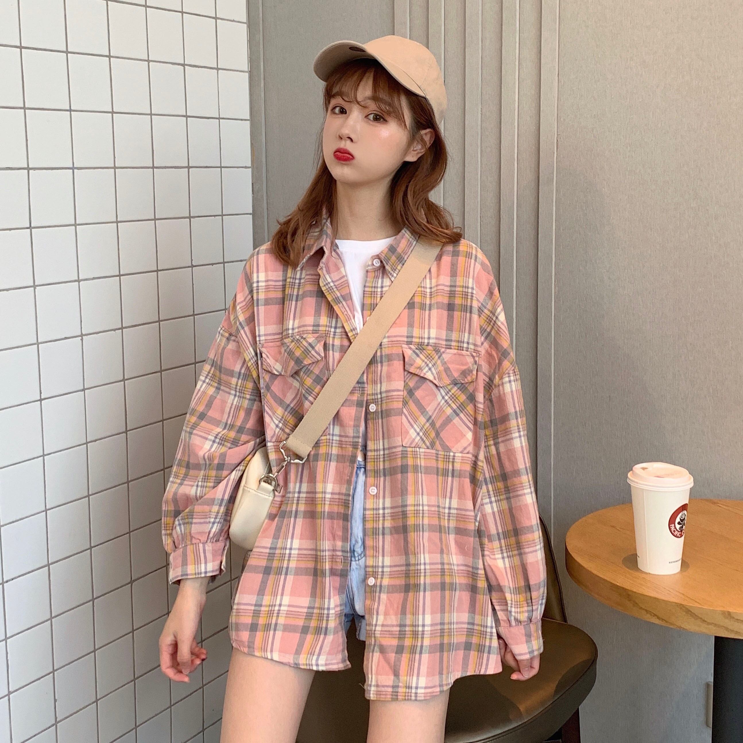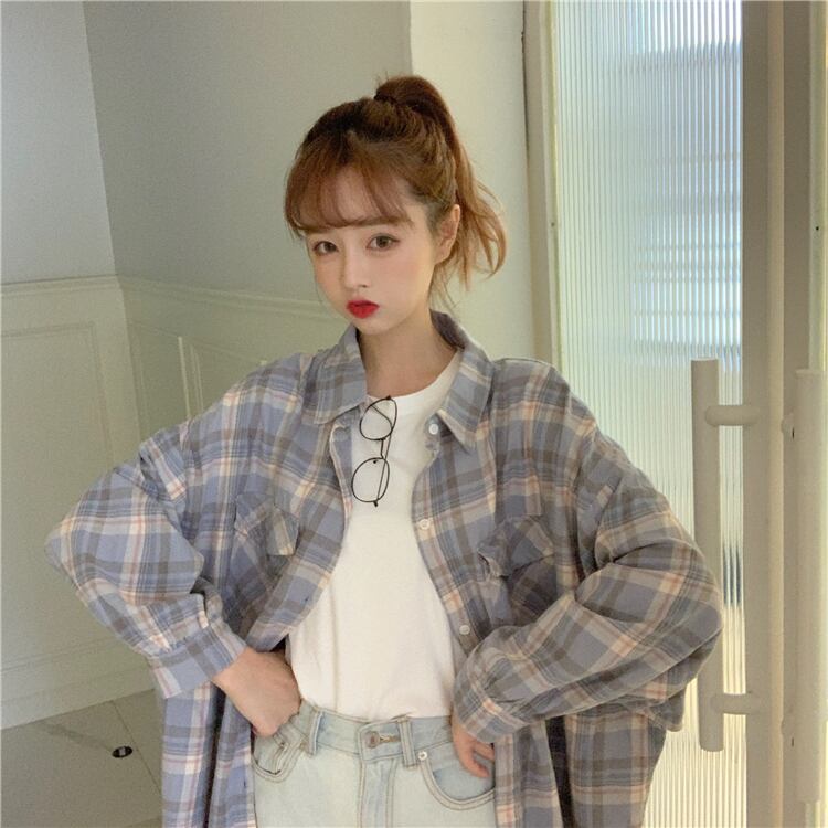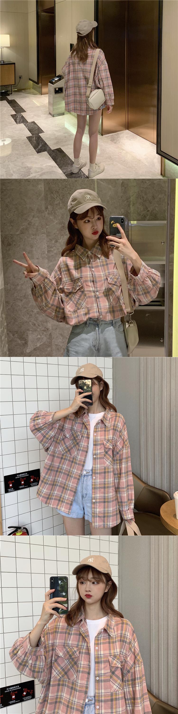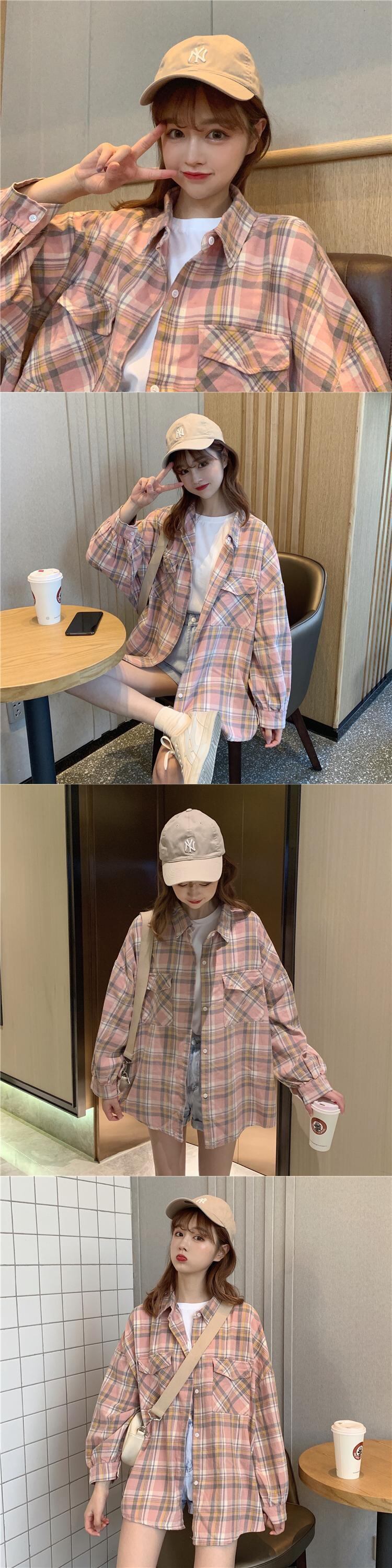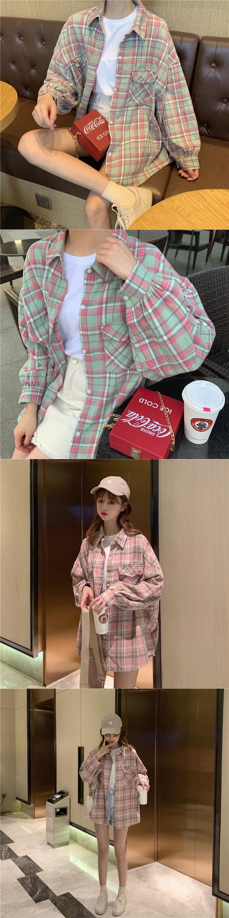 夏服韓国ファッション格子柄シャツ レディーストップス ルーズジャケット ロング 夏物 スタイル 長袖 YY42954895956
