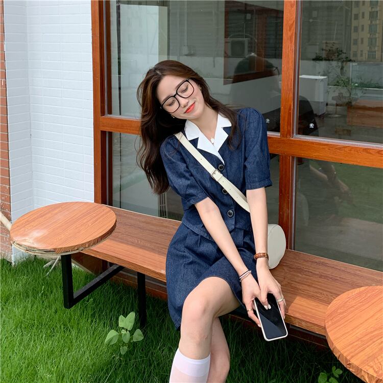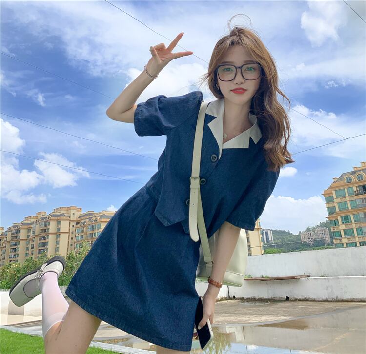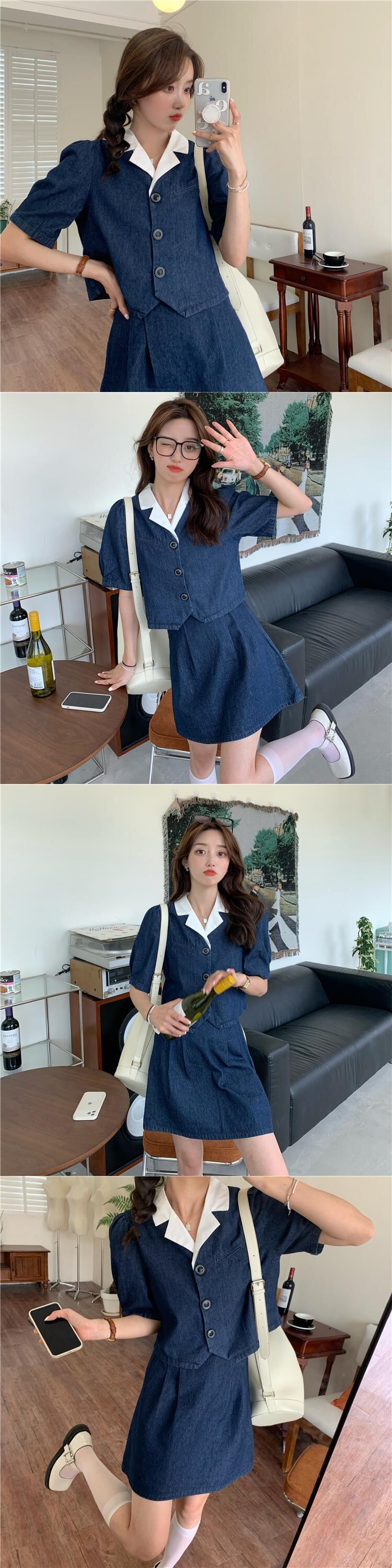 色:デニムブルーシャツ,デニムブルースカート