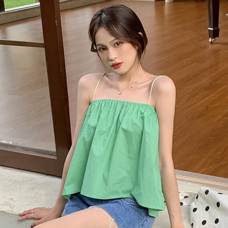 夏服韓国ファッションノースリーブストラップレスソリッド カラーレディース 夏物 ピュア ソリッドカラー スタイル YY96290938621