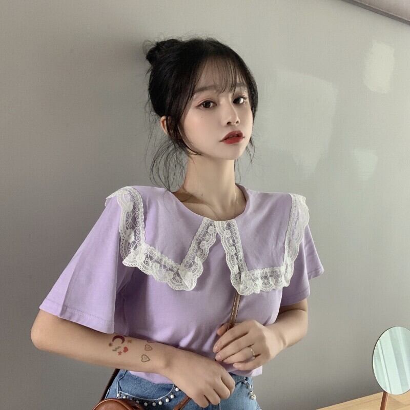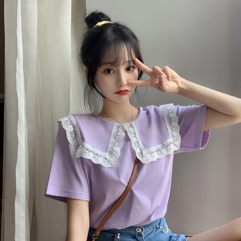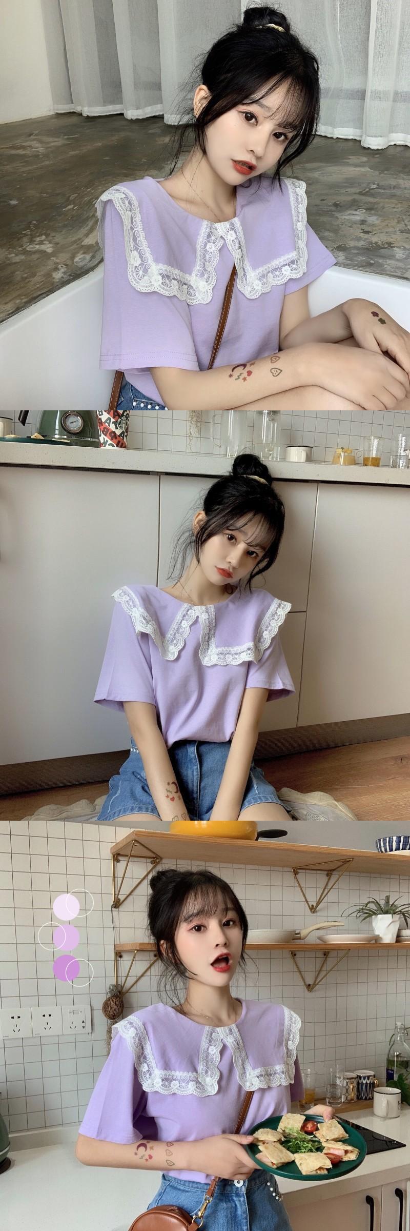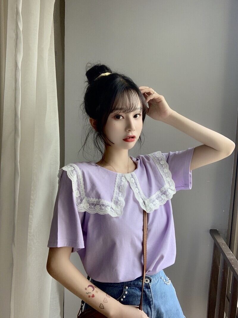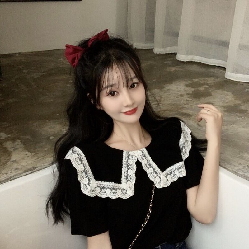夏服レースカラートップス ブラックTシャツトレンド 夏物 ワンナンバー37292824026