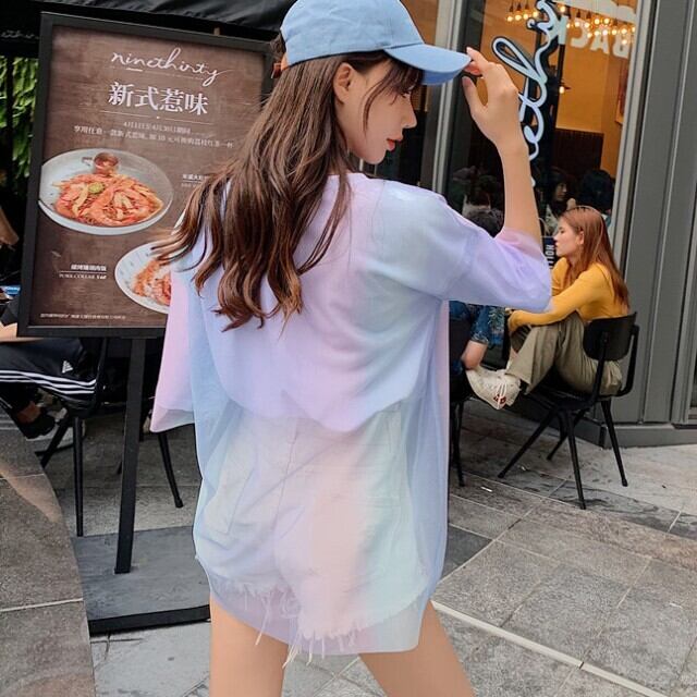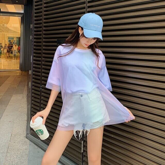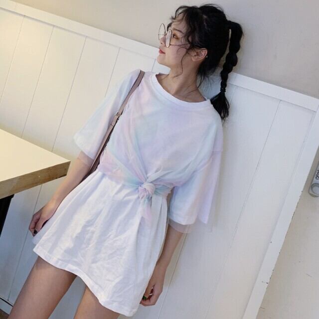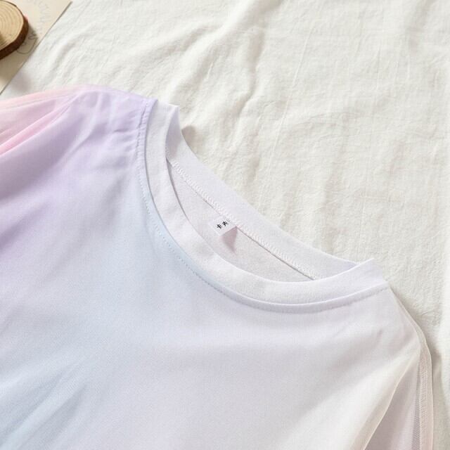 グラデーション Tシャツ レディース 重ね着 トップス ティーシャツ 個性的 レイヤード ストリート系 原宿 韓国ファッション