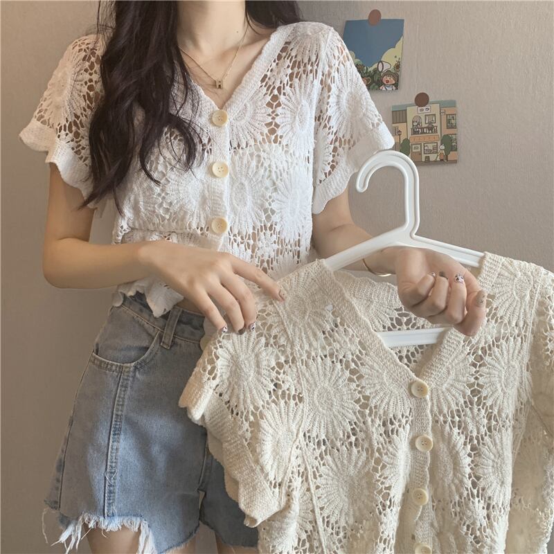夏服ニットセーター レディース韓国ファッション薄手Vネックカーディガントップス 夏物 スタイル ワンナンバー464700004
