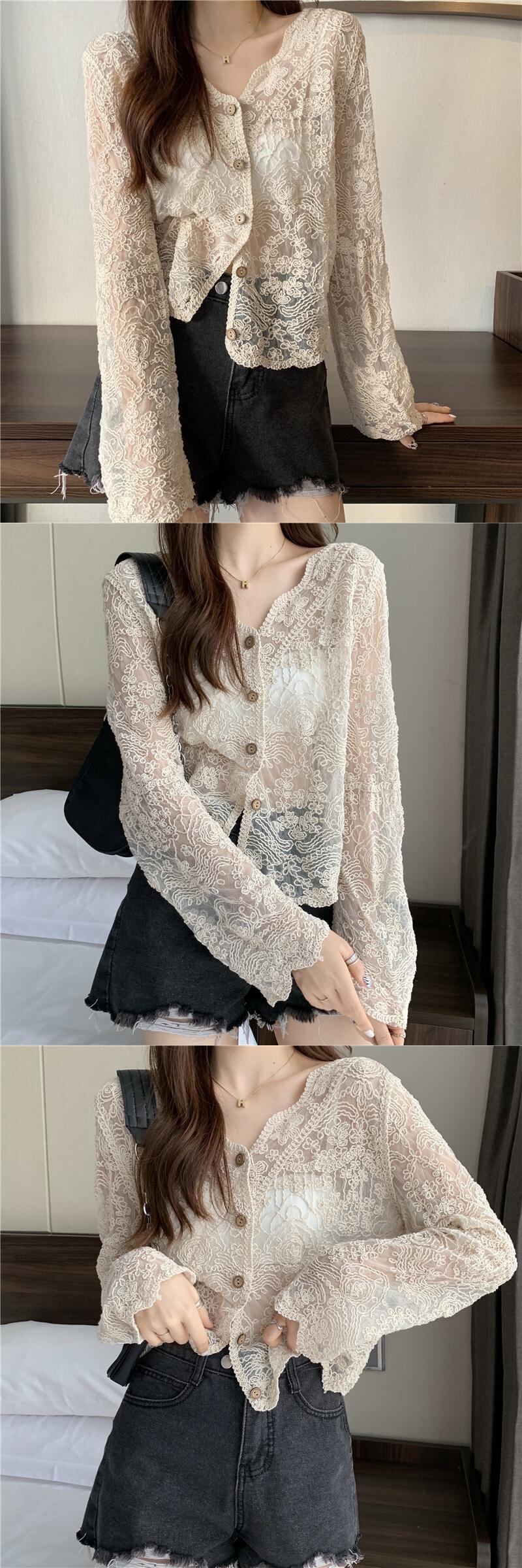 レースシャツ レディース夏服スタイルVネックトップス ロング 夏物 長袖 ワンナンバー89036857559