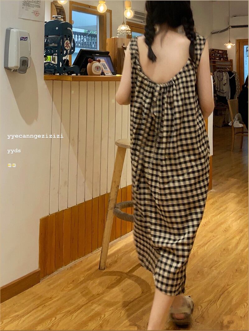 ホルター格子柄ワンピースレディース夏服ノースリーブロングスカート 大人ガーリー スウィート キュート カジュアル 夏物 MONROE4741304929