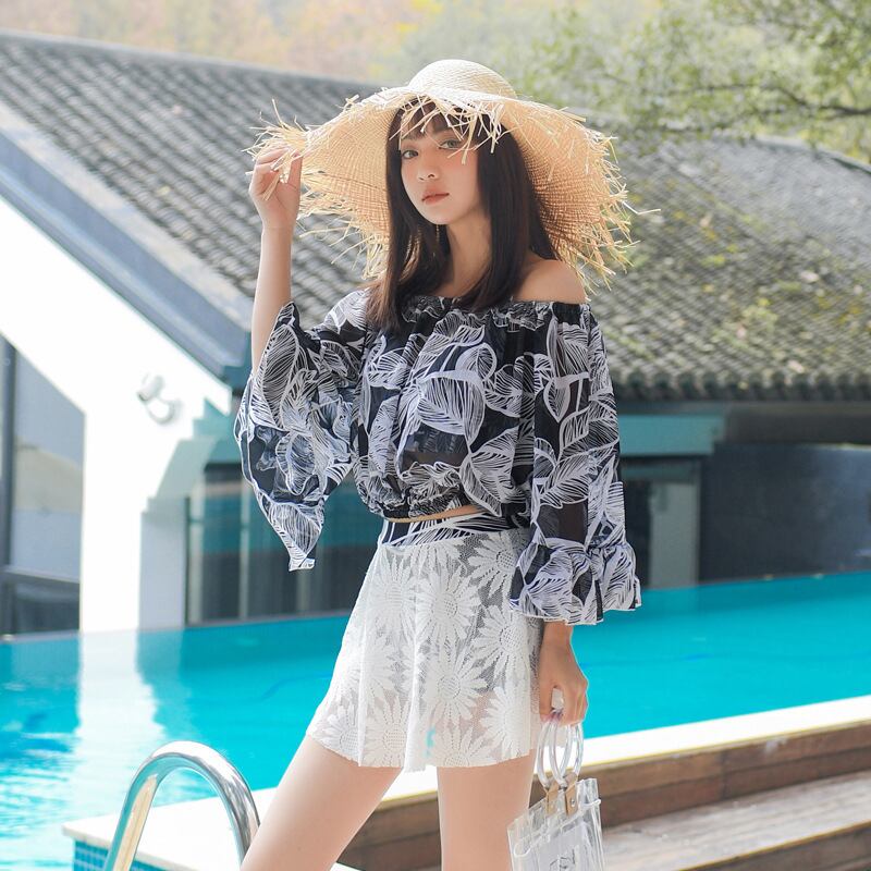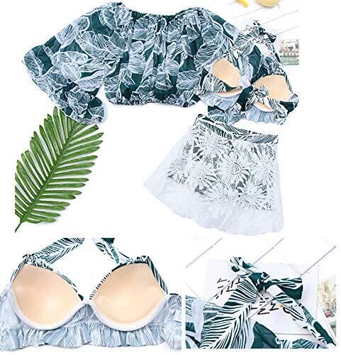 水着 レディース ビキニ 体型カバー 3点セット タンキニ セパレーツ オフショル カバーアップ フリル かわいい オフショルダー フレアトップ