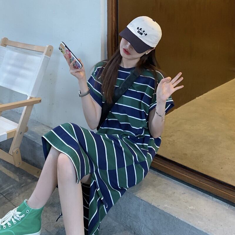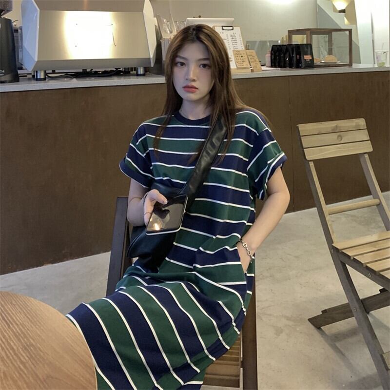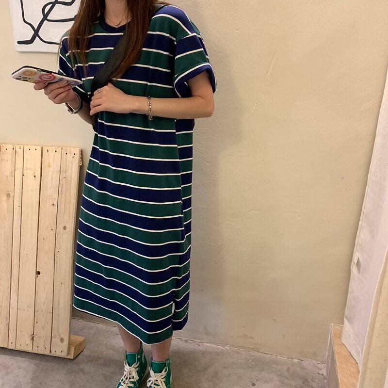 スタイルトレンドルーズストライプワンピース夏服カジュアルロングスカート 夏物 MONROE13252107393