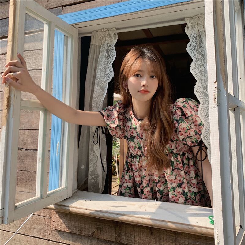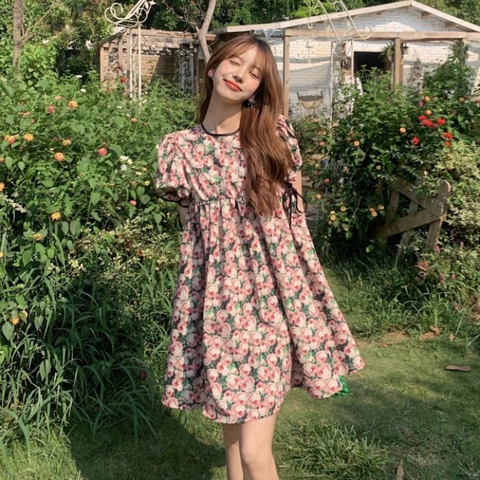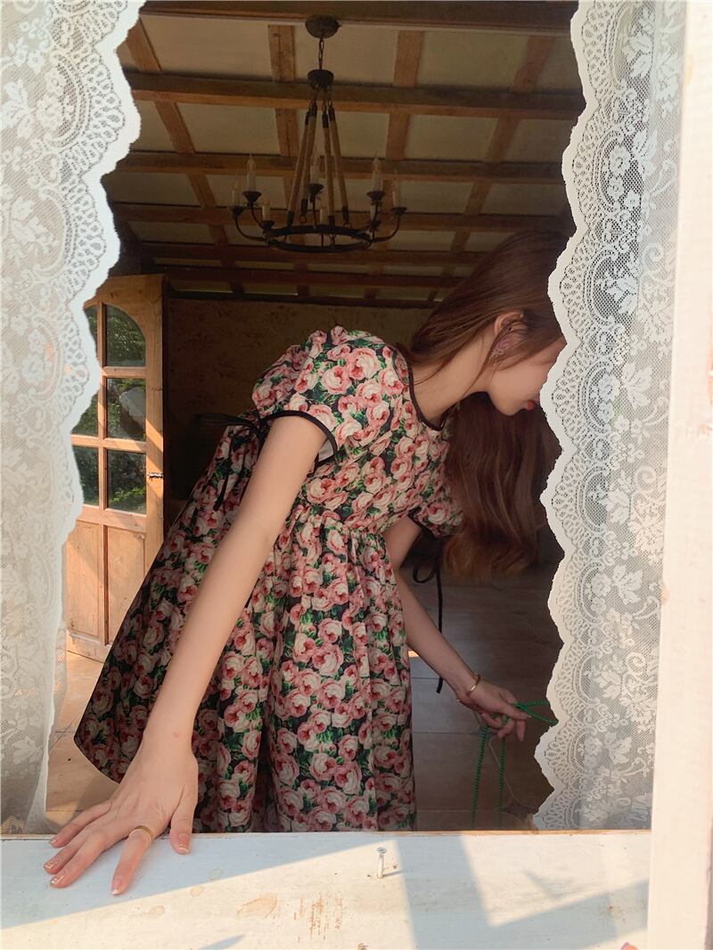 スリーブフローラルワンピースレディーススタンダードAラインショートスカート 夏服 レトロ 大人ガーリー スウィート キュート カジュアル 夏物 花柄 MONROE31229093434