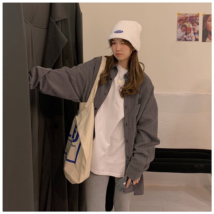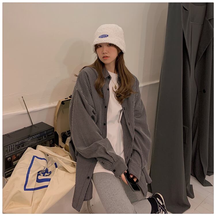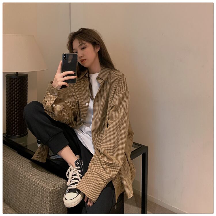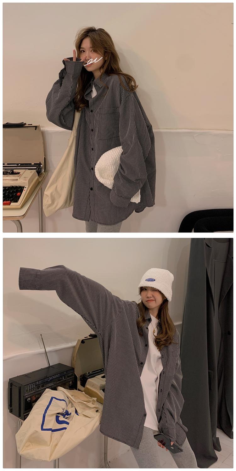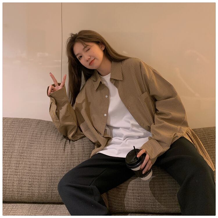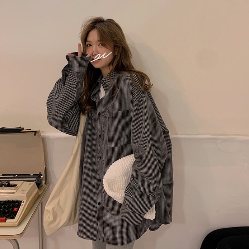 格子柄シャツ ジャケット レディーススタンダードスタイルスプリング秋物ルーズトップス ロング レトロ 春物 オータム 長袖 SYJ45831496038