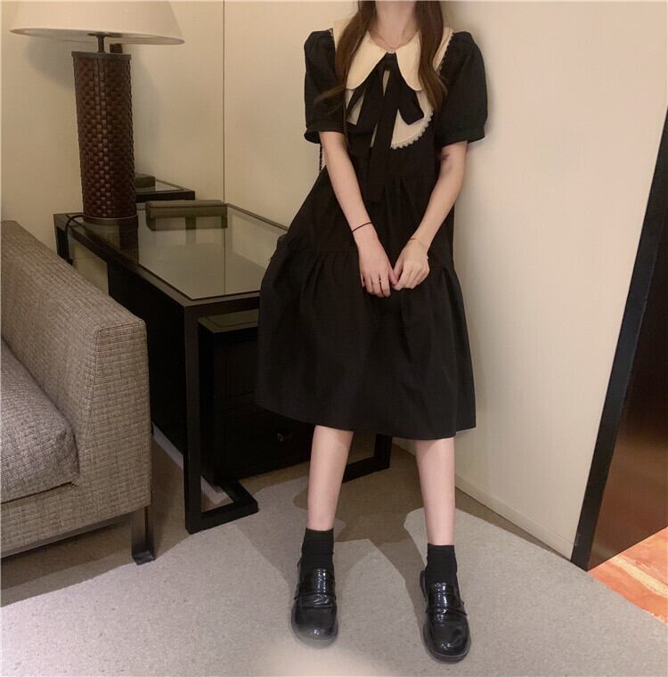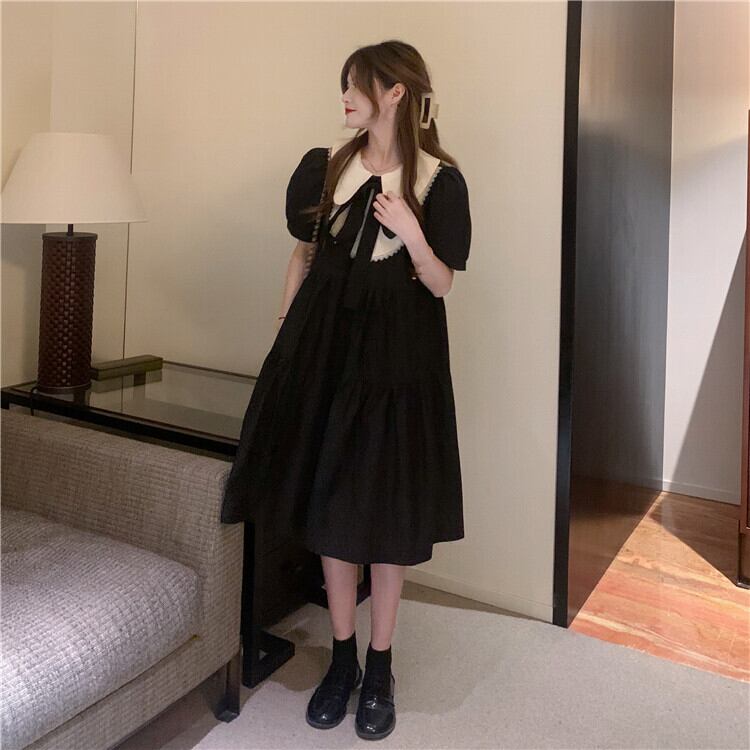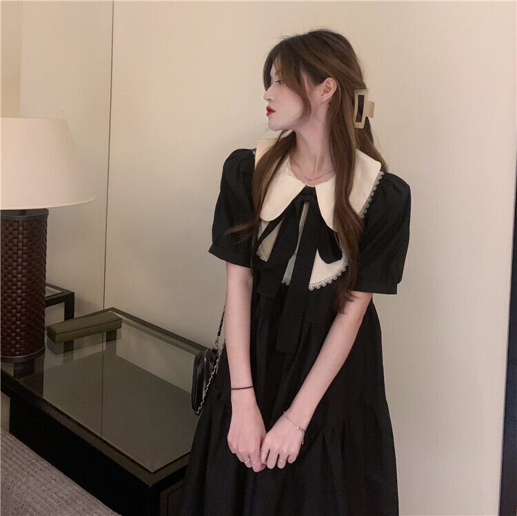 スリーブスカート レディース夏服ワンピースカラーウェストブラック 夏物 ウエスト ワンナンバー67184582594