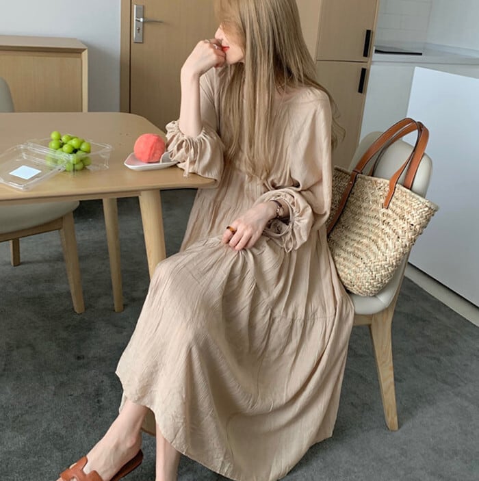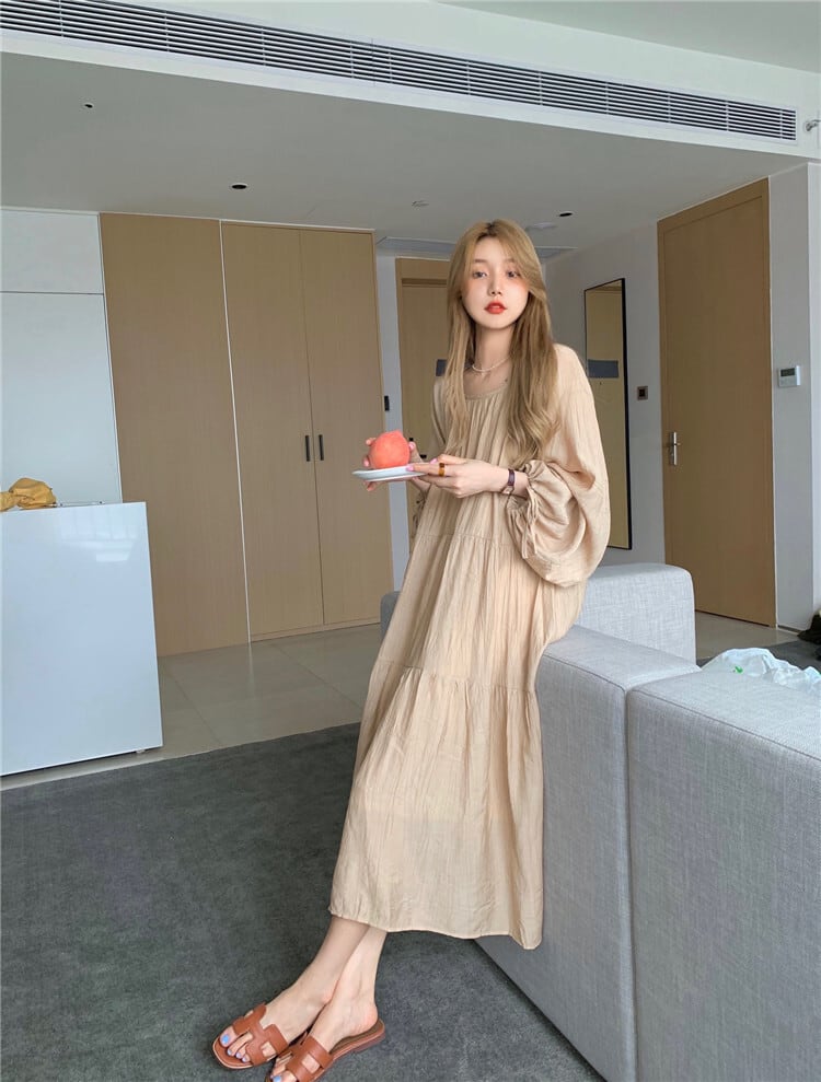 ロングワンピーススプリング秋物ルーズスリムスカート 大きめサイズ 春物 オータム 長袖 SYJ4954341721