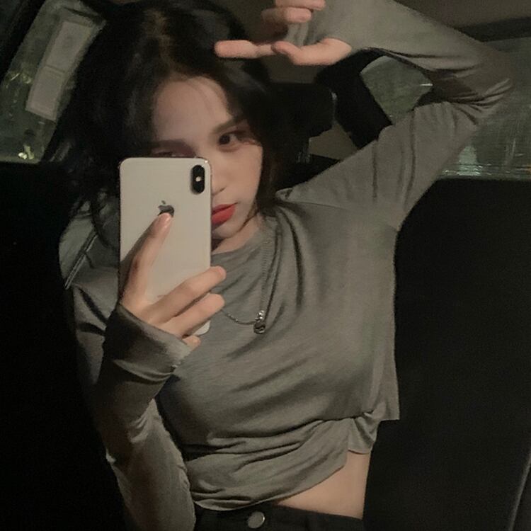 スタイルスリムショートトップス レディース夏服薄手グレーTシャツ ロング 大人ガーリー スウィート キュート カジュアル 夏物 ピュア 長袖 SYJ43028465083