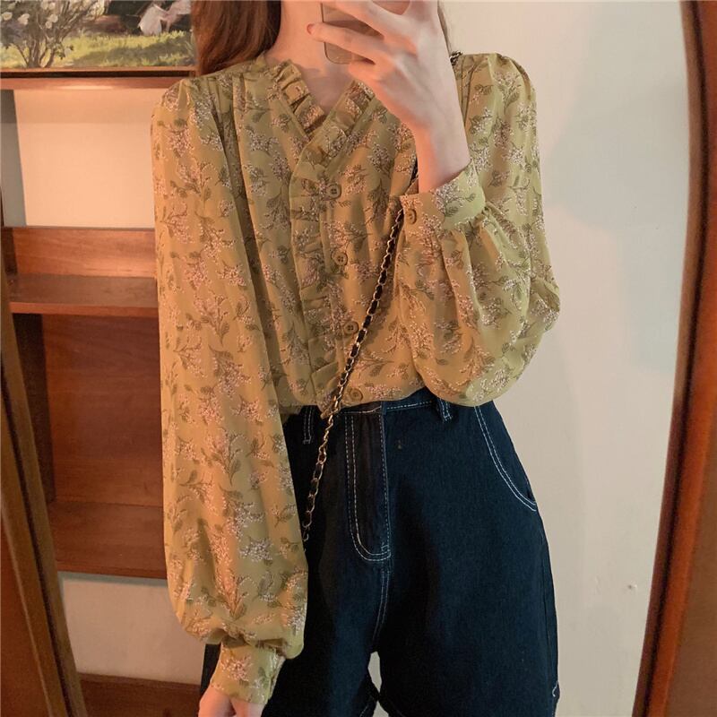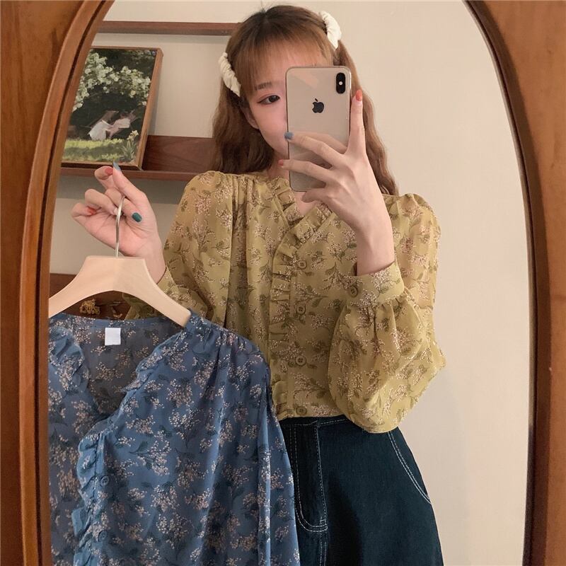 スタイルフローラルシャツ 夏服薄手シフォントップス ロング 夏物 花柄 長袖 ワンナンバー6592704