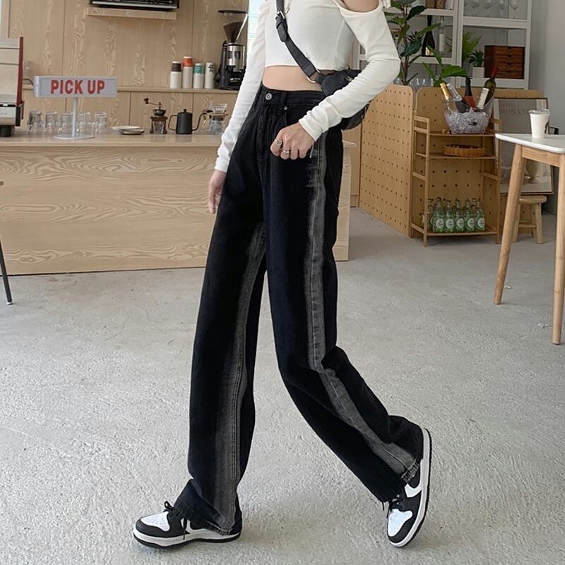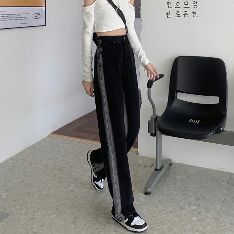 ブラックジーンズ スプリング秋物ルーズハイウェストパンツ 春物 オータム ウエスト SYJ96692720775