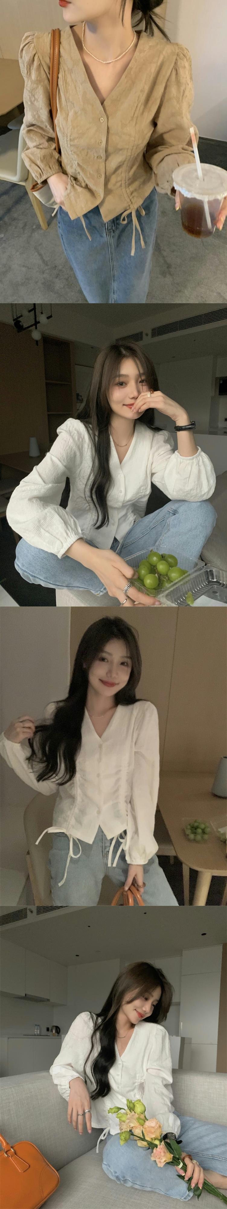 スプリングシャツ スタイルVネックショートトップス ロング 春物 オータム 長袖 SYJ19448363227