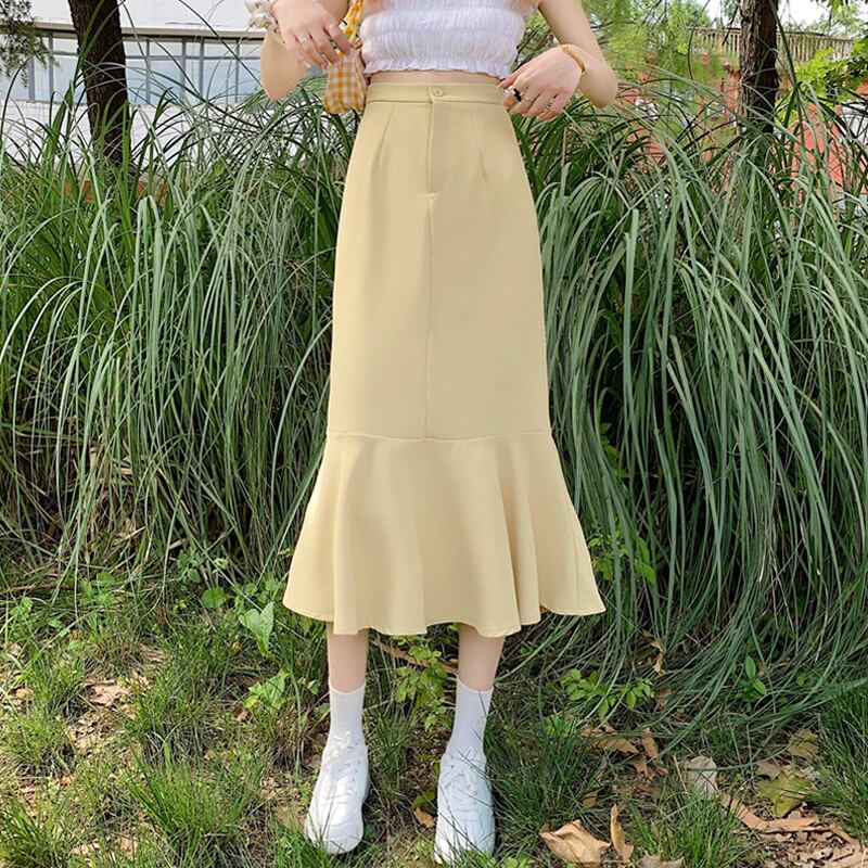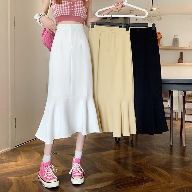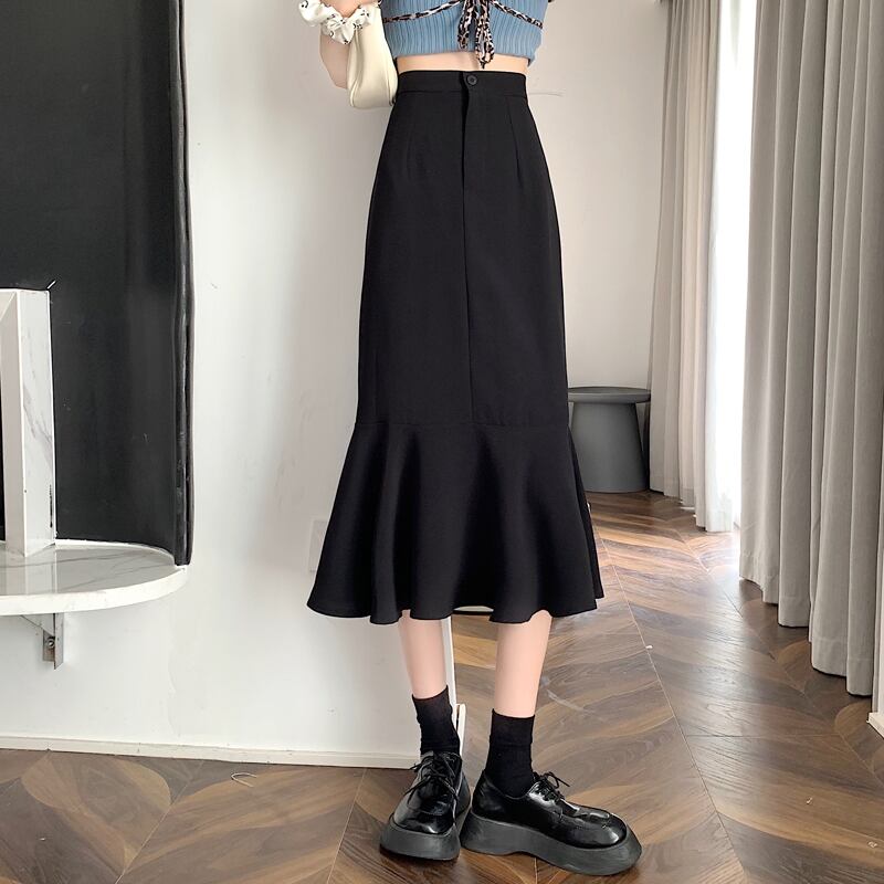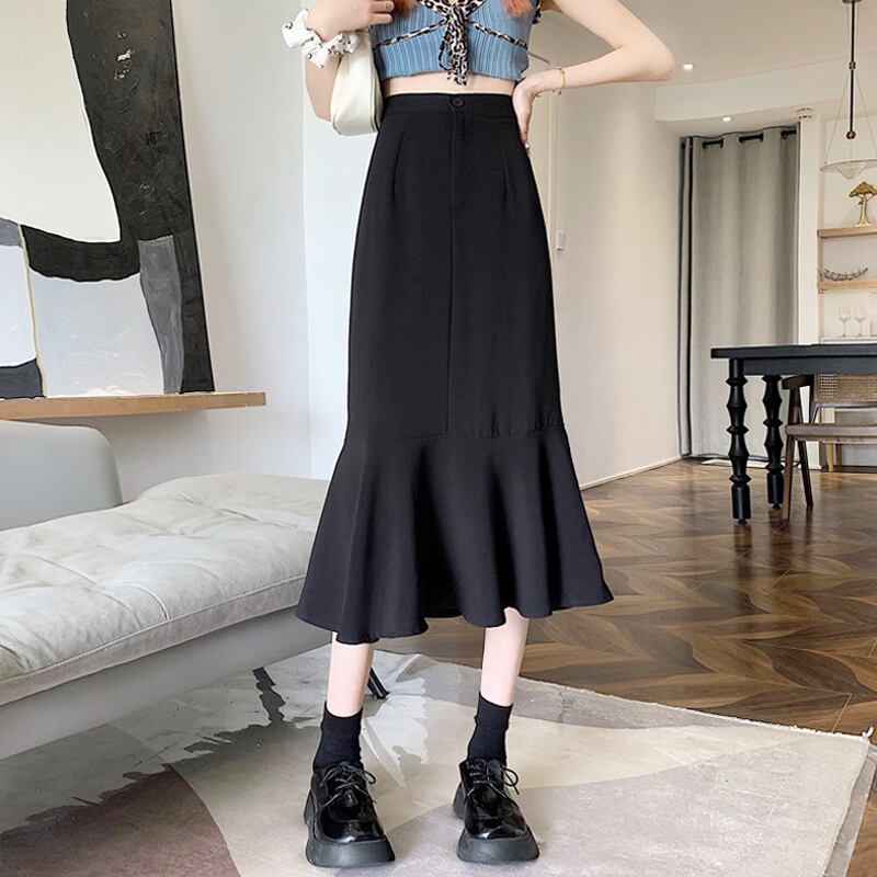 ブラックスカート レディースAライン夏服ハイウェストウェストロング 夏物 ウエスト ミドル丈 SYJ47723107787
