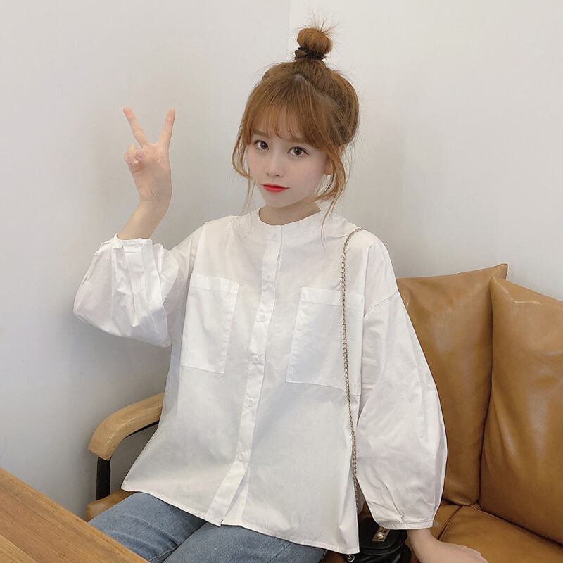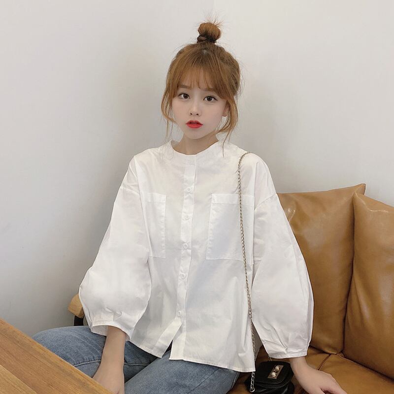 スプリング秋物ホワイトシャツ スタンダードスタイルブラウス ロング レトロ 春物 オータム 長袖 SYJ6307700424