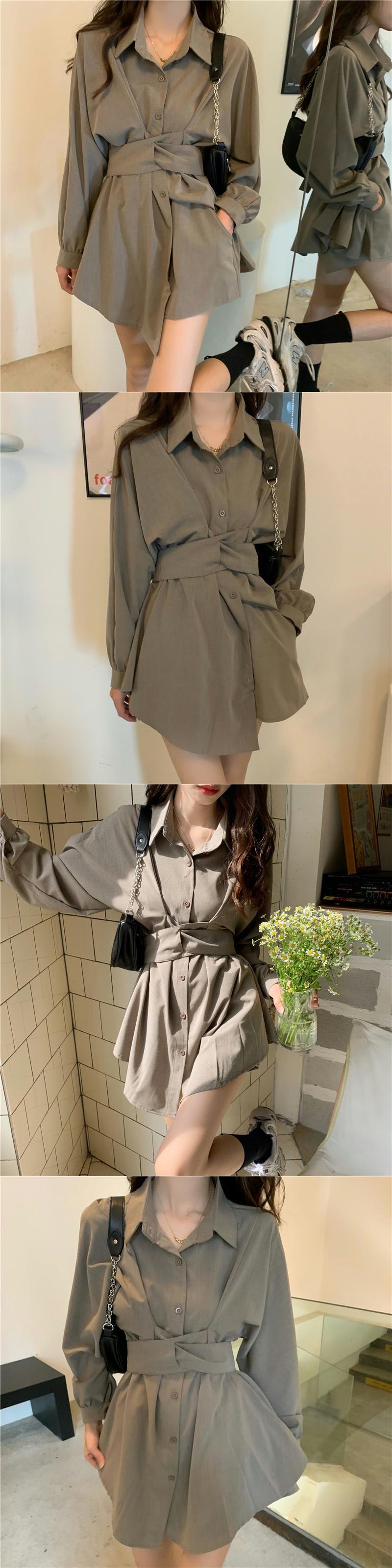 ブルーシャツ ワンピーススプリング秋物ウェストショートスカート 春物 オータム ウエスト SYJ69735718829