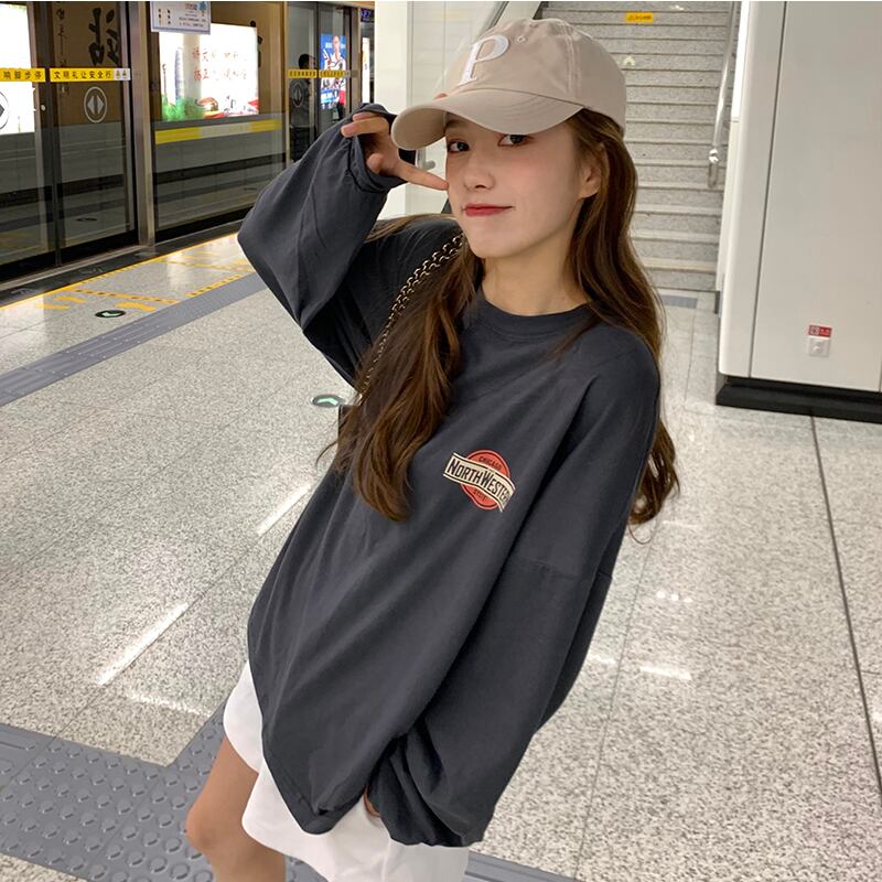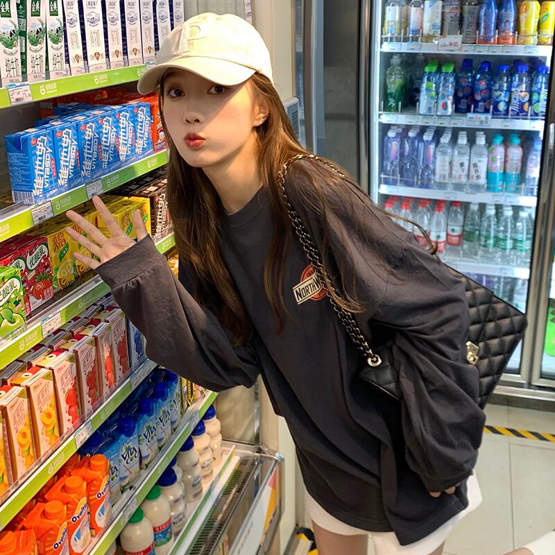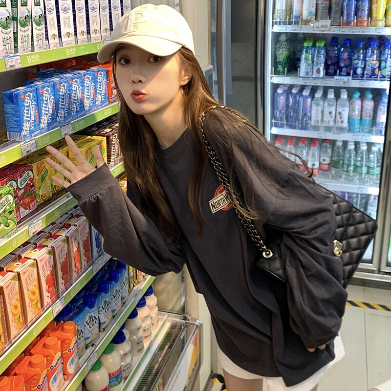 ルーズTシャツスプリング秋物薄手ブラウス 韓国ファッションスタイルトップス ロング 春物 オータム 長袖 SPM83898123157
