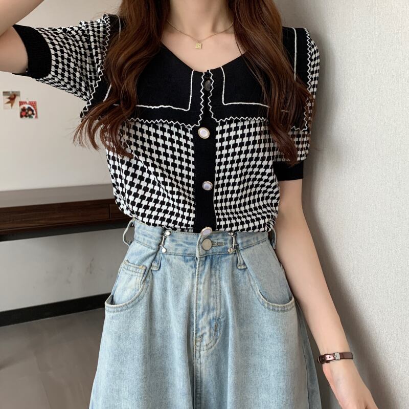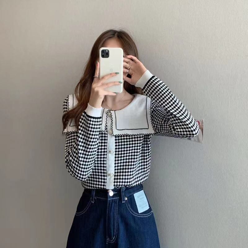 秋物韓国ファッションネイビーカラープルオーバー スリムニットトップス レディースNEW 大人ガーリー スウィート キュート カジュアル オータム スタイル YY95656138515