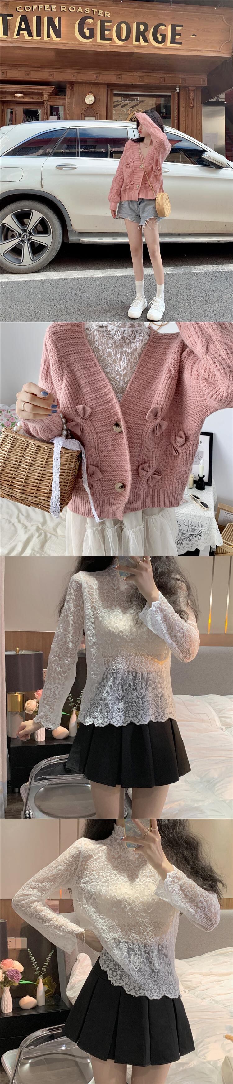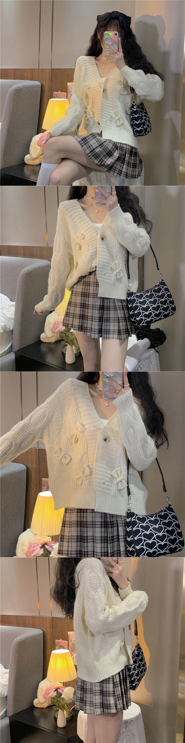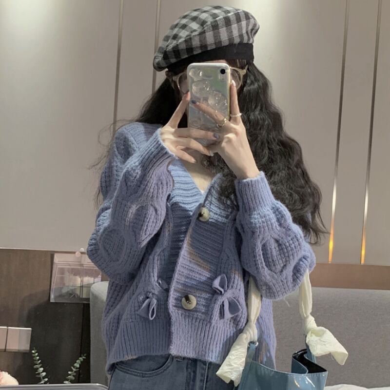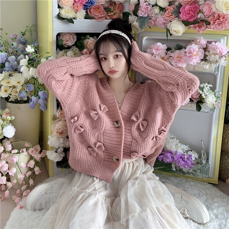 セーター 秋物ウィンタースタンダードスタイルVネックリボンルーズニットカーディガン レトロ オータム 冬物 ワンナンバー13786340418