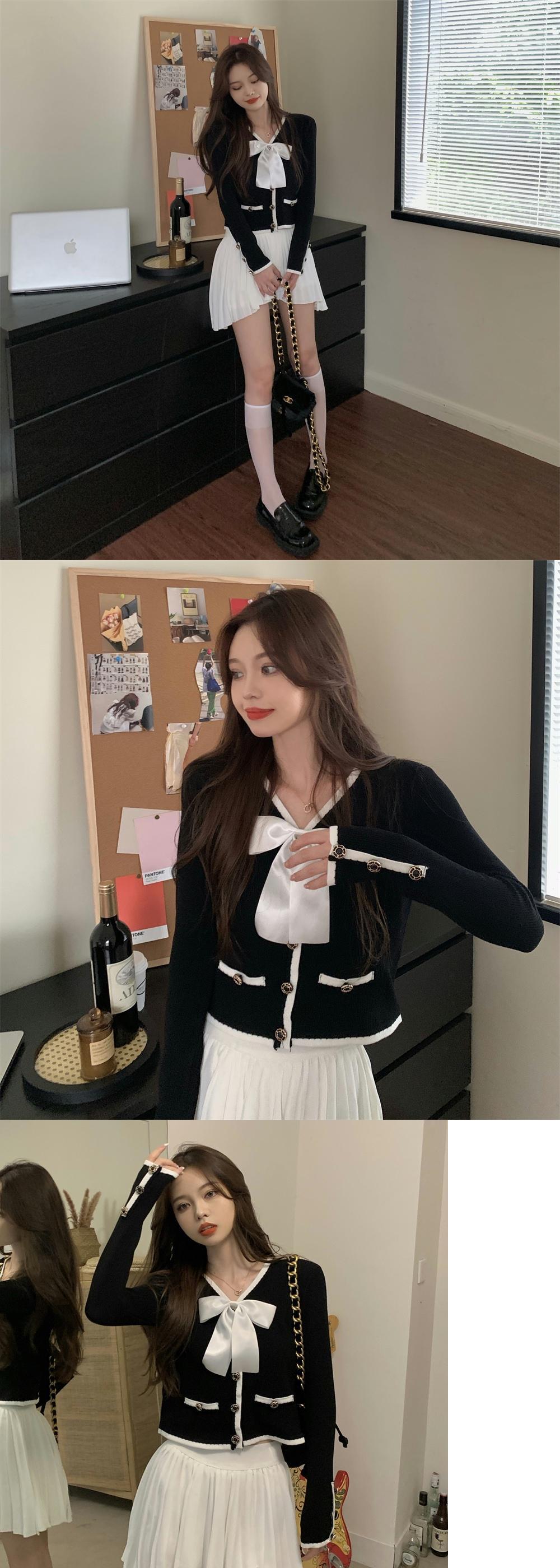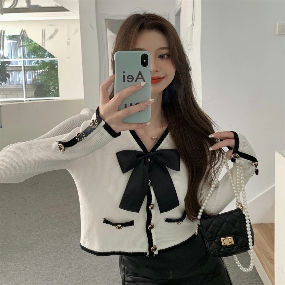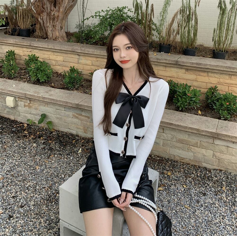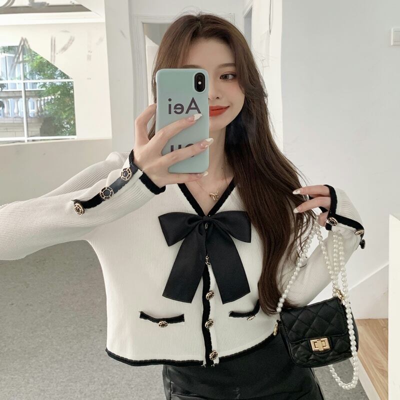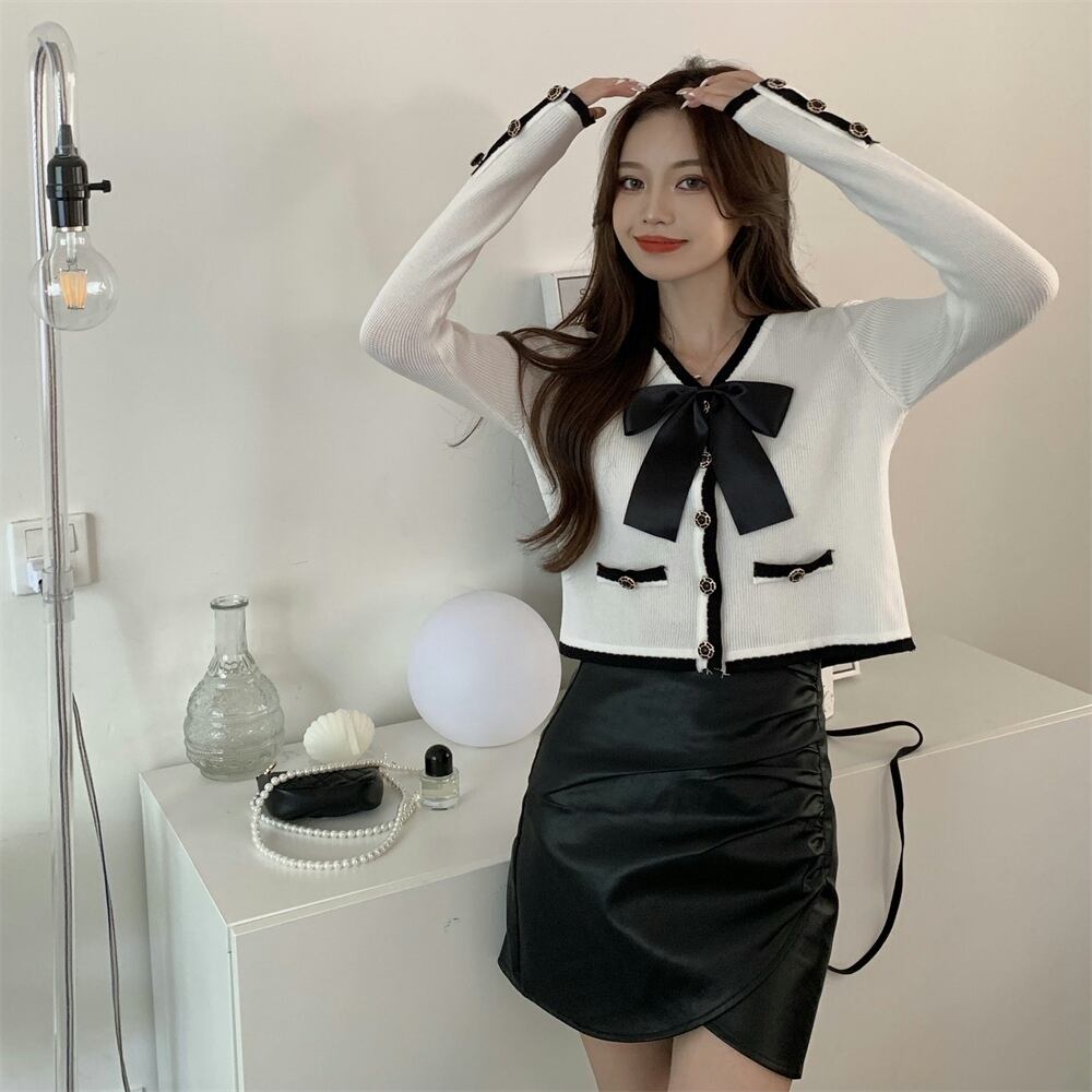 ブラックニットカーディガンスプリング秋物ウィンターセーター コート ショートトップス 春物 オータム 冬物 SPM29471432175