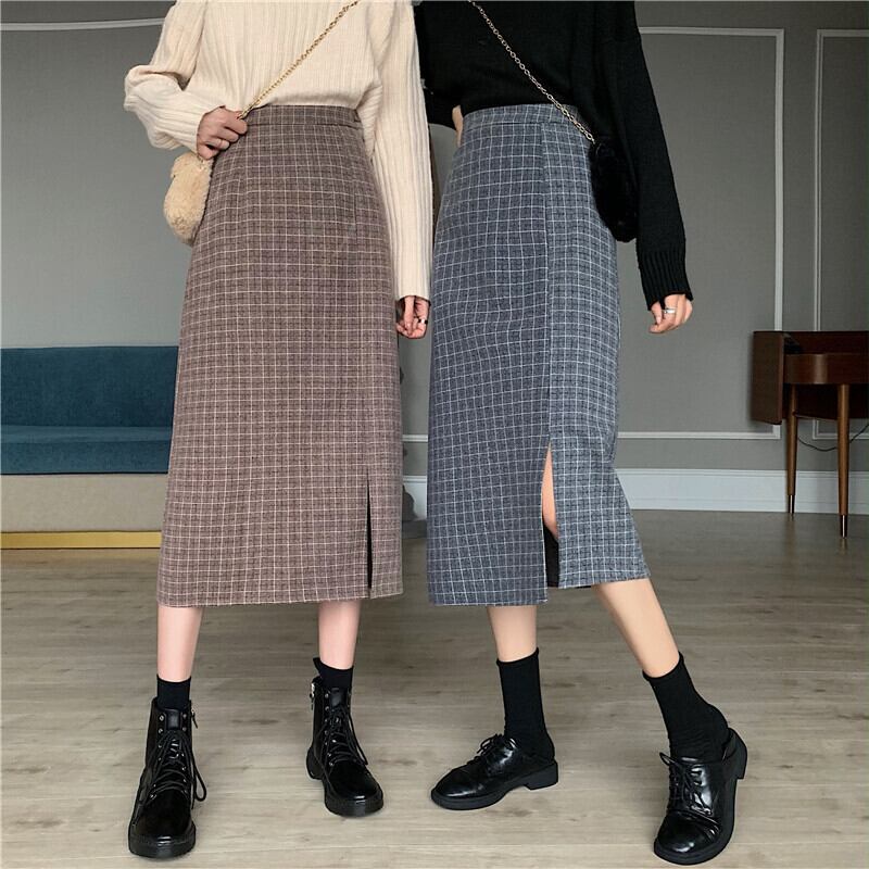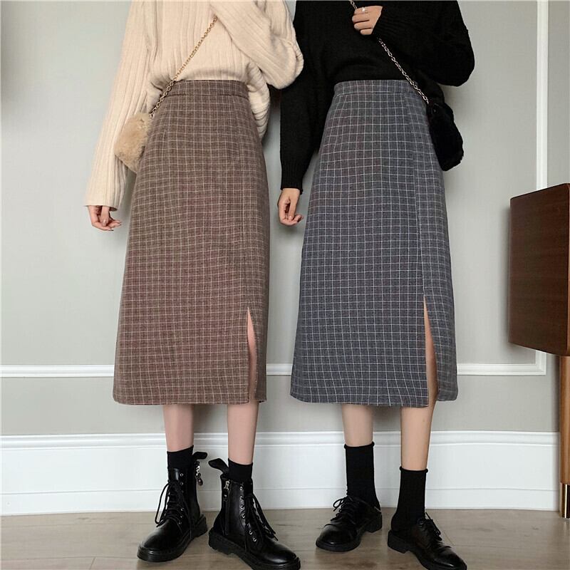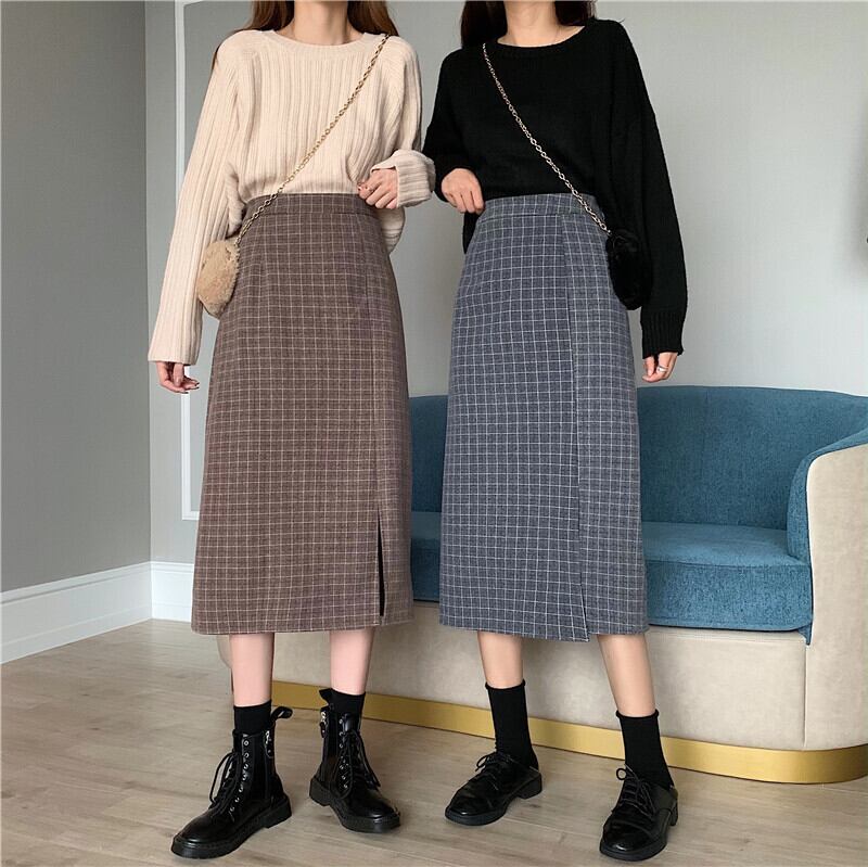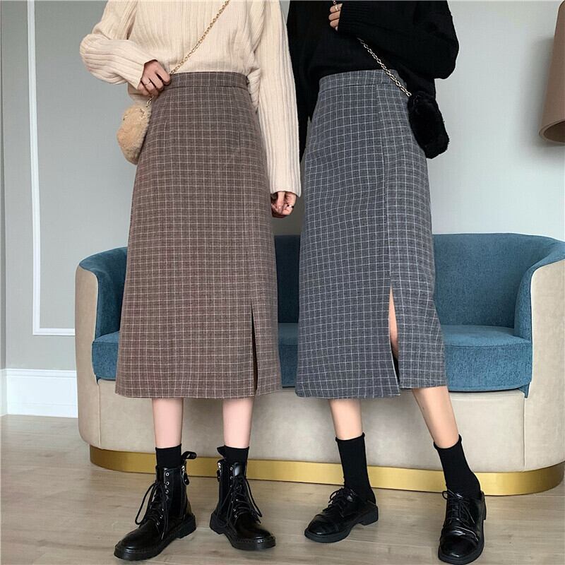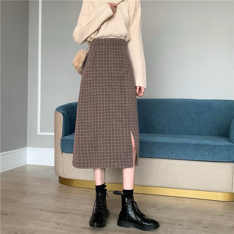 格子柄スカート レディース秋物ウィンターセーター Aラインスリムロング オータム 冬物 ミドル丈 SYJ69513738974
