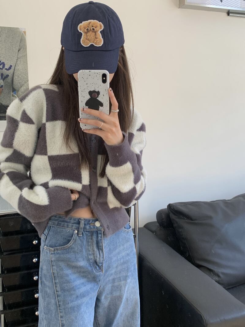 セーター 秋物ウィンタースタンダードショートニットカーディガンジャケット レトロ オータム 冬物 SPM77664862425