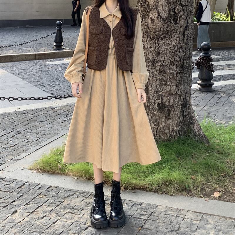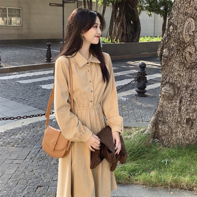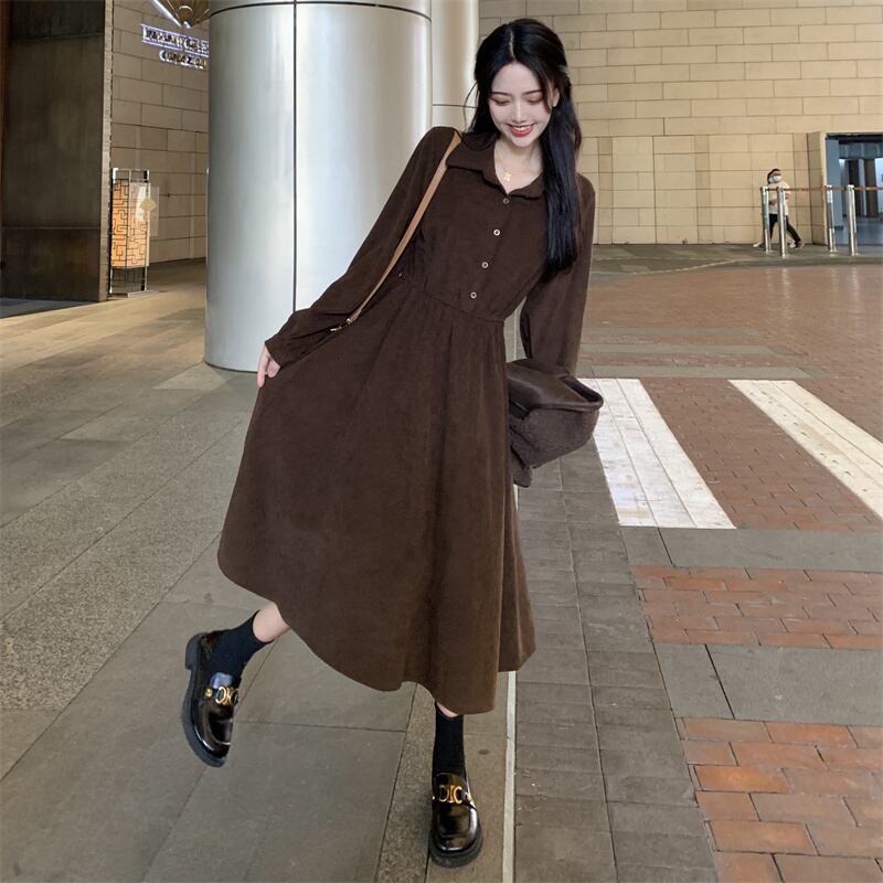 秋物ウィンタードレス ワンピース シャツ ゆったりスカート ロング オータム 冬物 長袖 ミドル丈 ワンナンバー18399317291