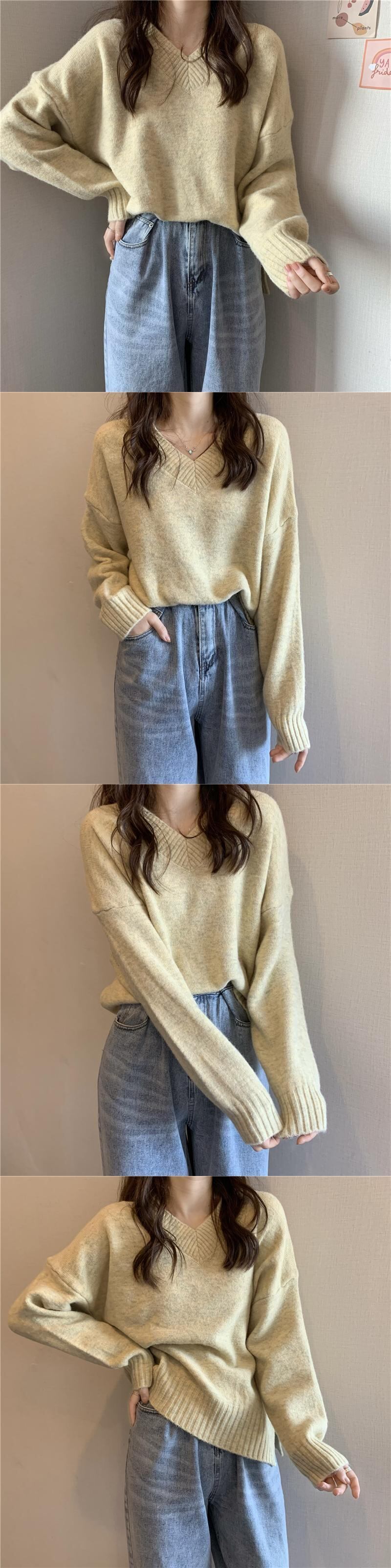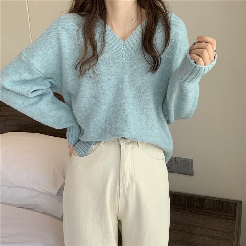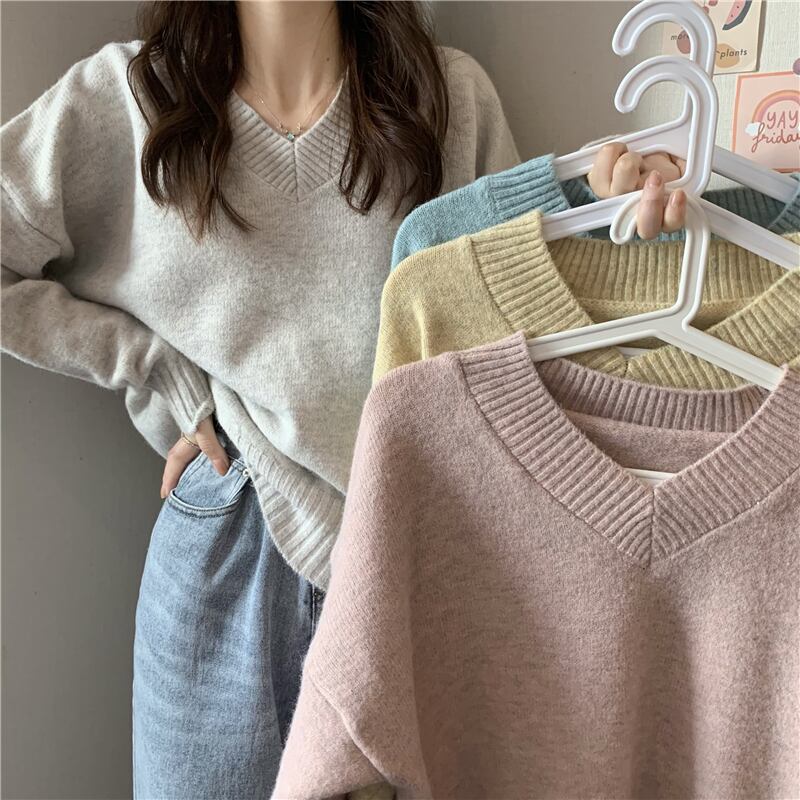 スタイルVネックプルオーバー セーター スプリング秋物スタンダードニット レトロ 春物 オータム SYJ33835306805
