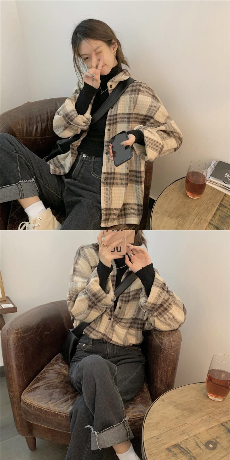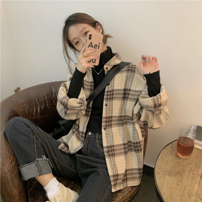 格子柄シャツ ジャケット スプリング秋物スタンダードトップス レトロ 春物 オータム SYJ60334730683