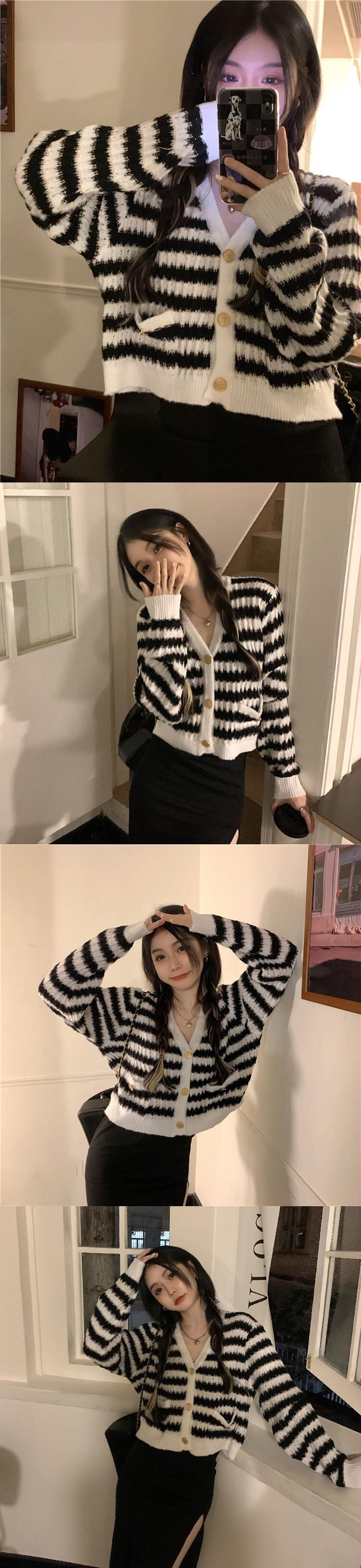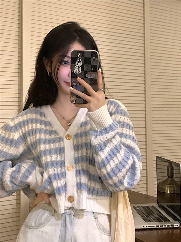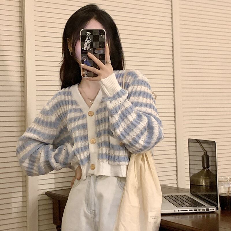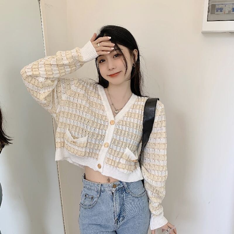 ショートトップス セーター ジャケット スプリングVネックカーディガン 春物 SPM78074610749