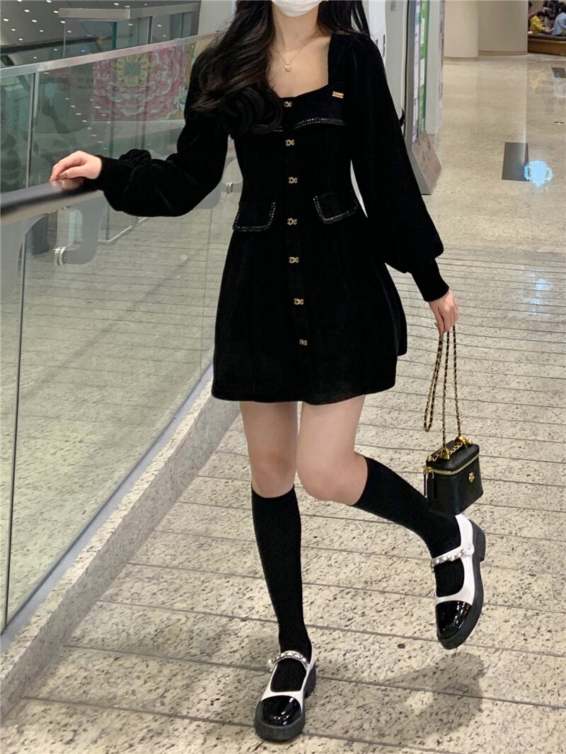 厚みワンピーススプリング秋物ブラックスカート 春物 オータム ピュア SPM57435651218