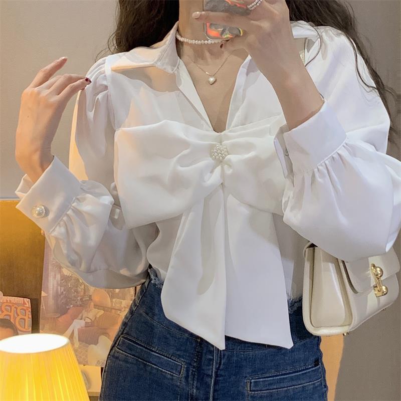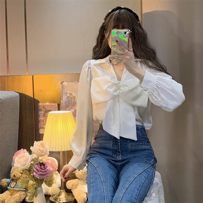 ホワイトシャツ スプリング秋物リボントップス 春物 オータム SPM62525789192