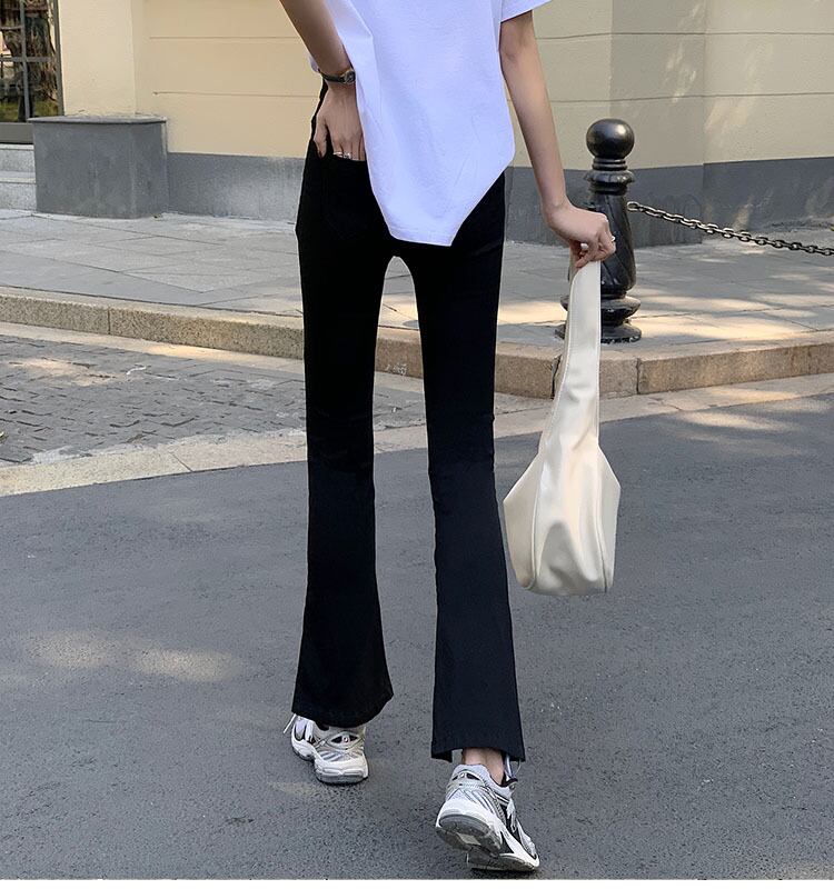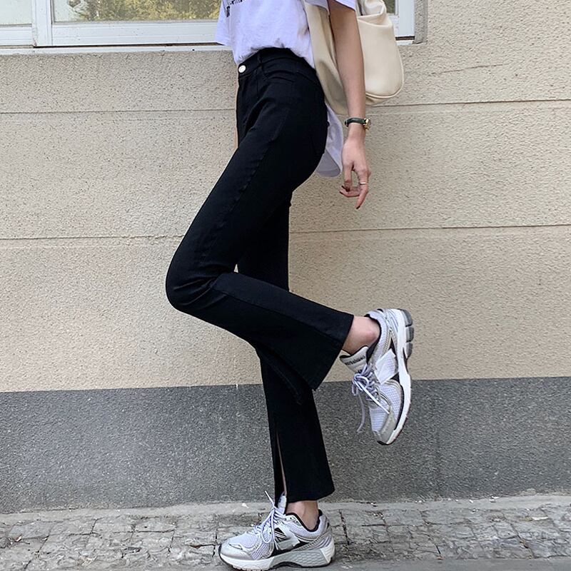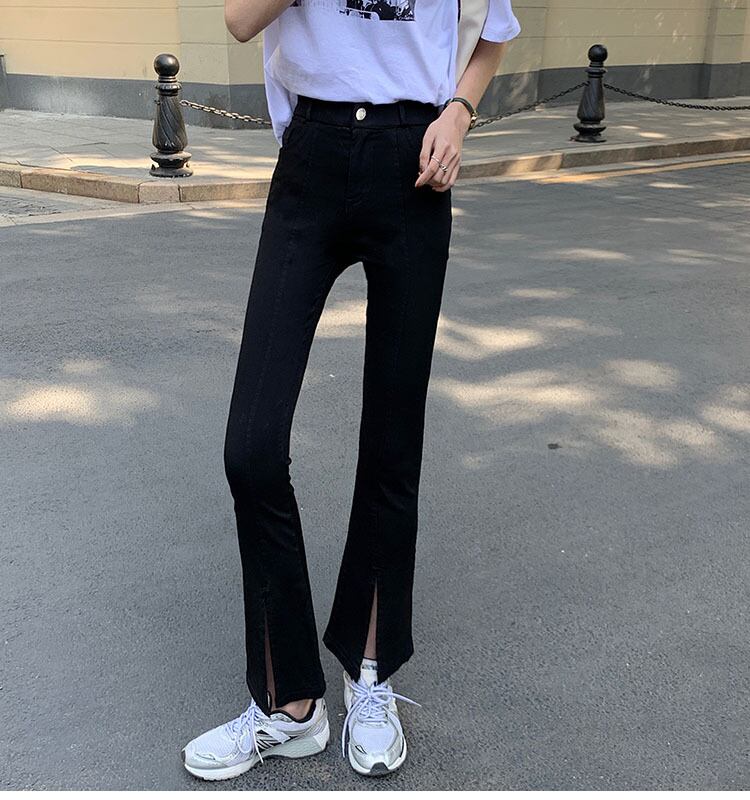 ブラックハイウェストウェストジーンズ スプリング秋物スリットパンツ 春物 オータム ウエスト SPM51924078443