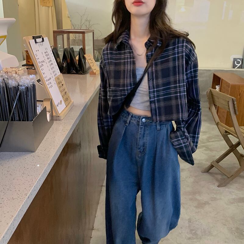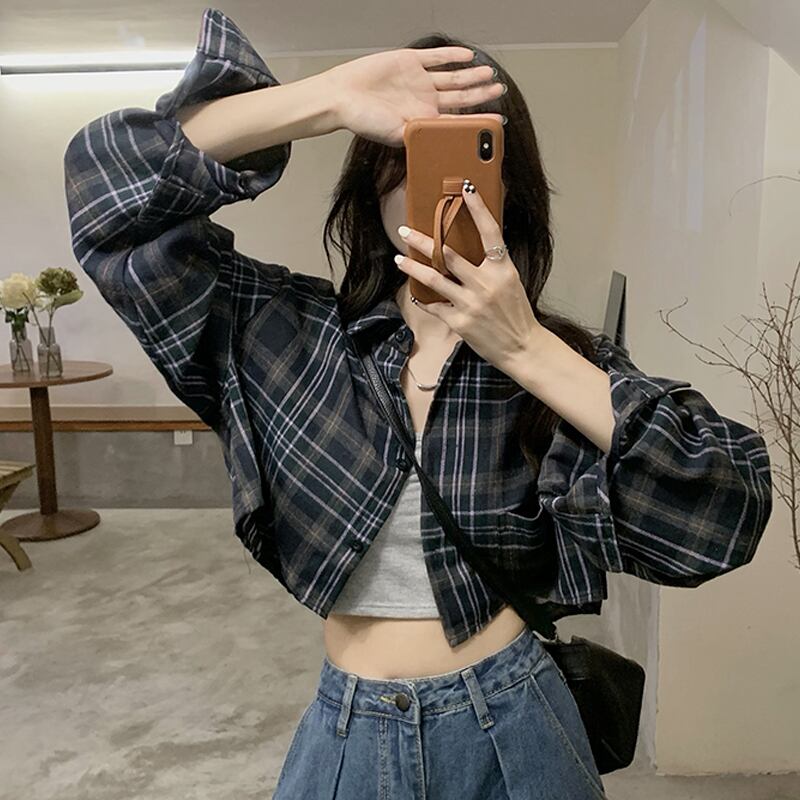 格子柄ショートシャツアドバンススプリング秋物長袖スリーブトップス ロング 大人ガーリー スウィート キュート カジュアル 春物 オータム SPM24387372848