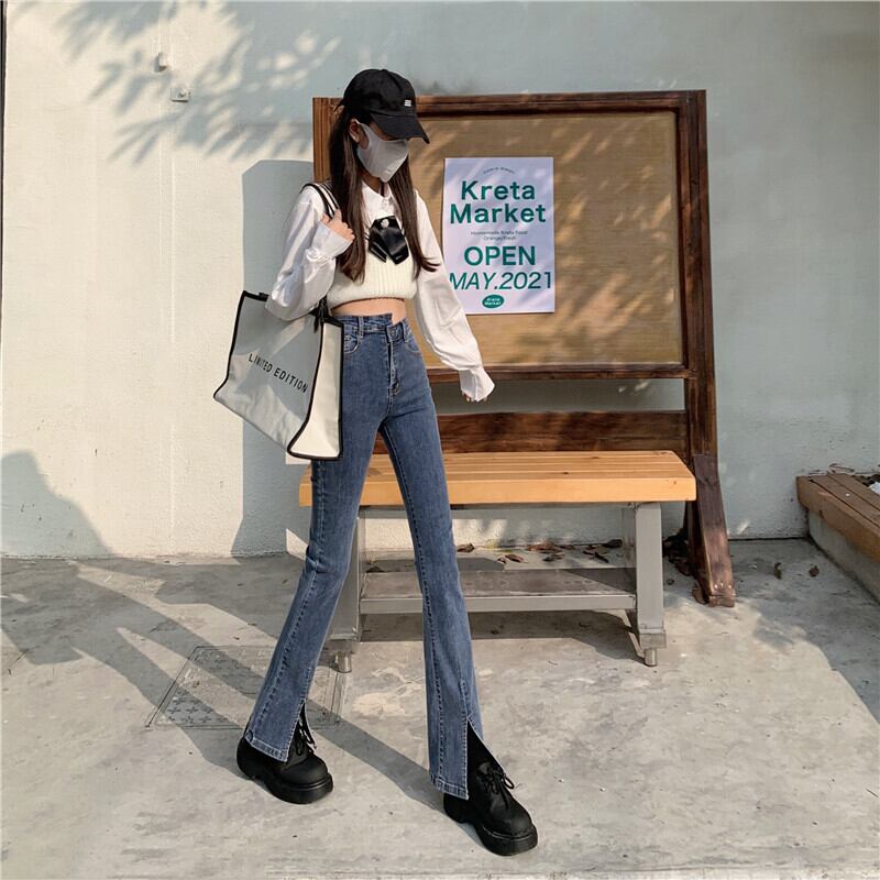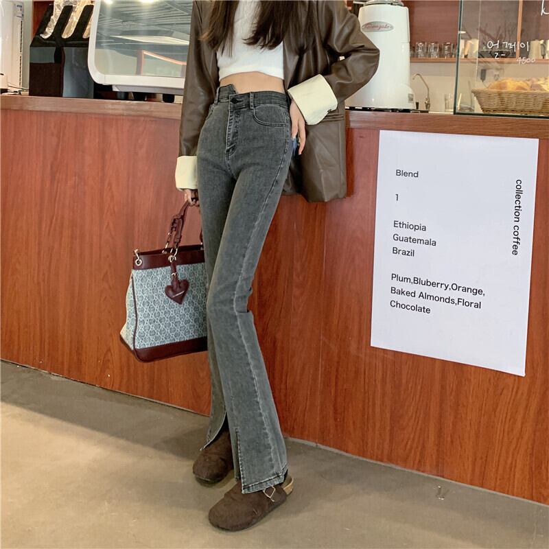 スリットハイウェストウェストジーンズ スプリング秋物薄手パンツ スタンダード レッド レトロ 春物 オータム ウエスト SPM87628865872