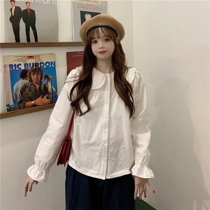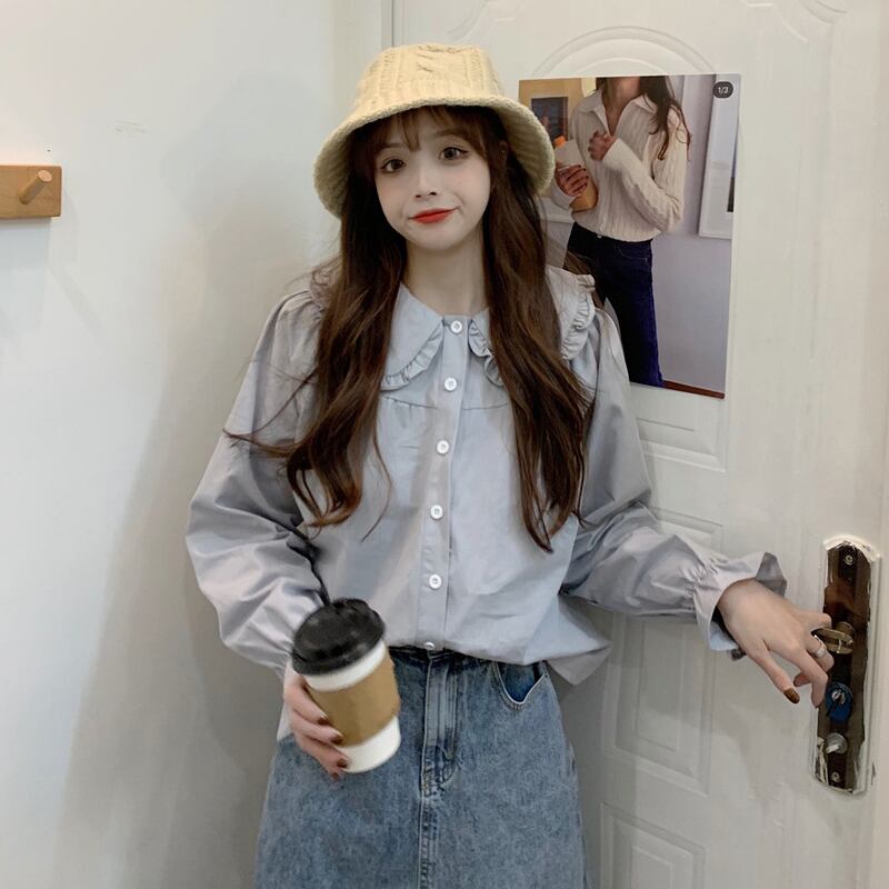カラーホワイトシャツ スプリングトップス 大人ガーリー スウィート キュート カジュアル 春物 SPM19798721855