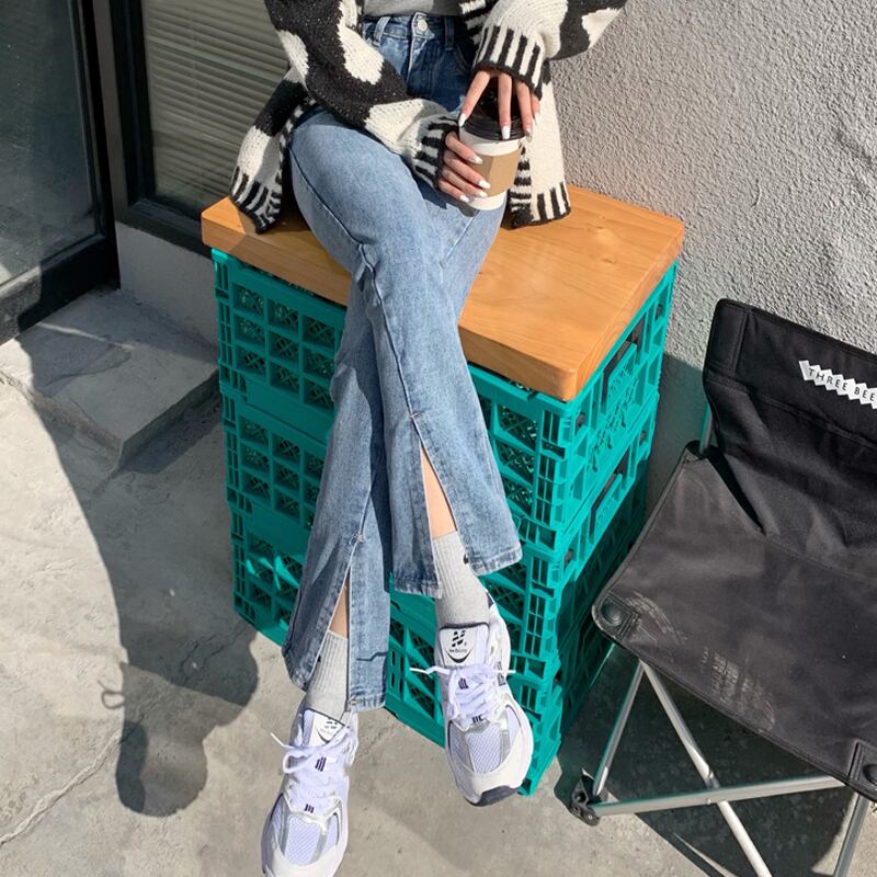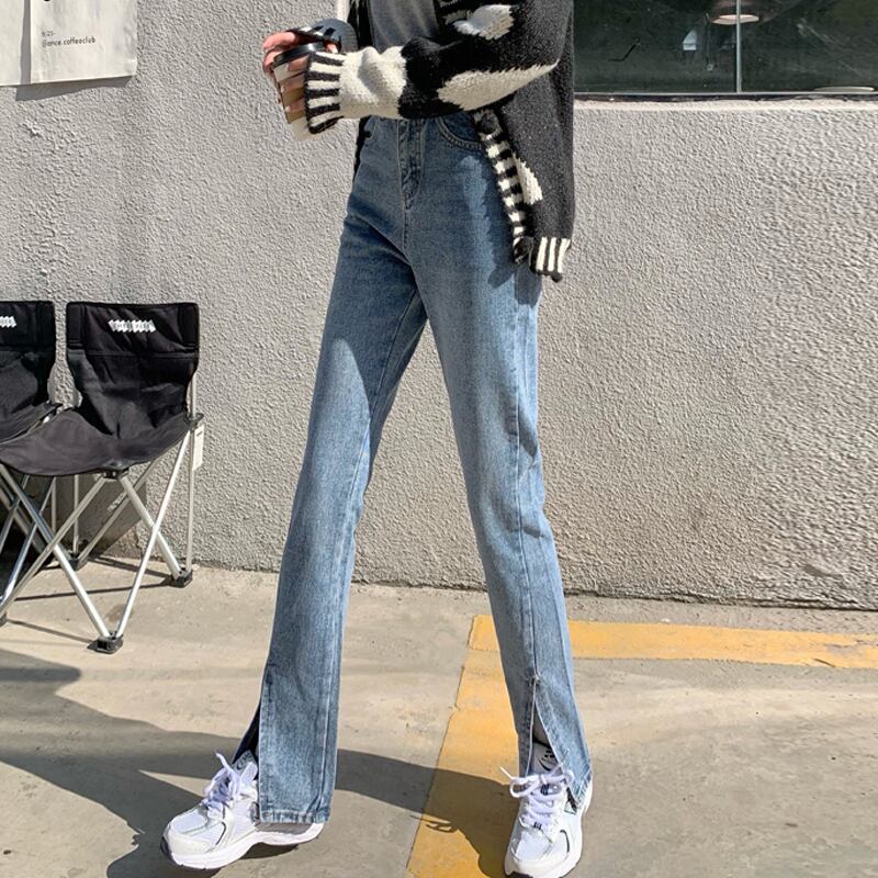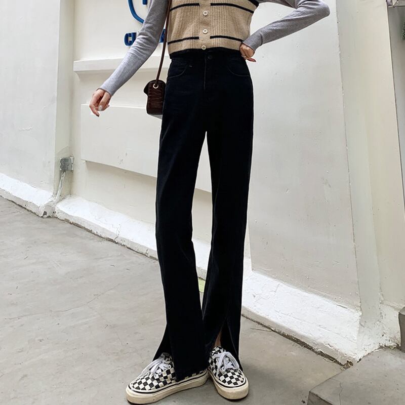 ブラックスリットジーンズ ハイウェストウェスト薄手スプリングルーズパンツ 春物 ウエスト SPM86779023595