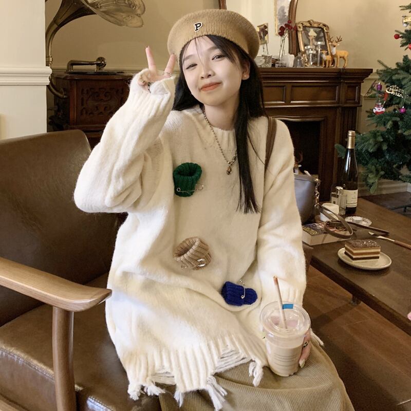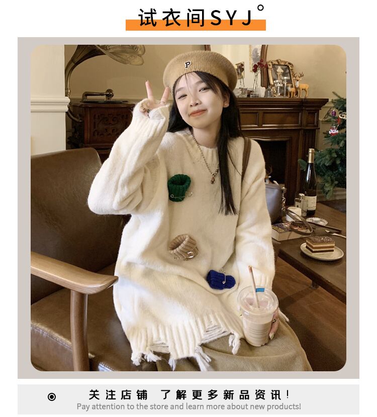 セーター スプリングルーズスタイルスタンダードトップス レトロ 春物 ミドル丈 SYJ59261753462