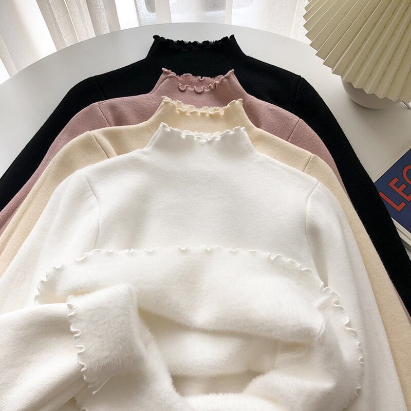 セーター スプリング秋物厚みゆったりシャツ ホワイトニットトップス ロング 春物 オータム 長袖 SYJ21387988474