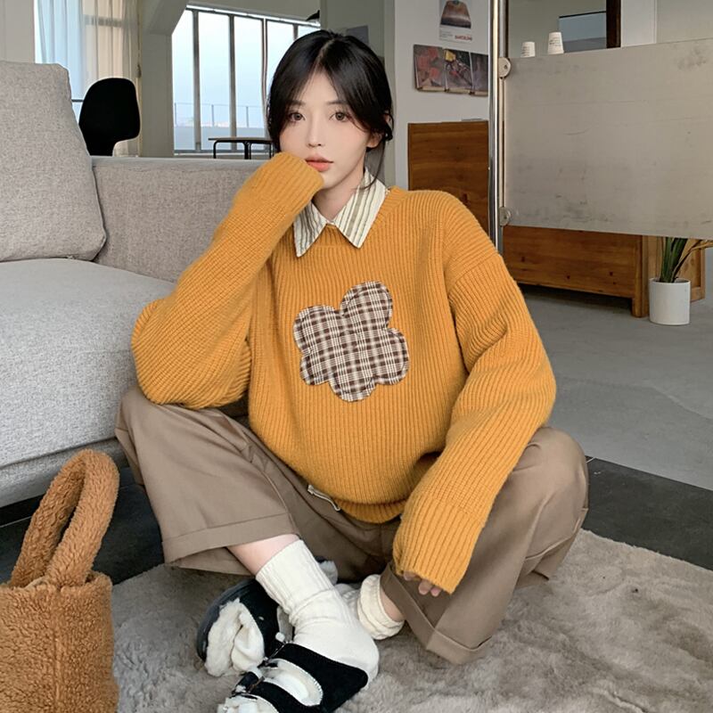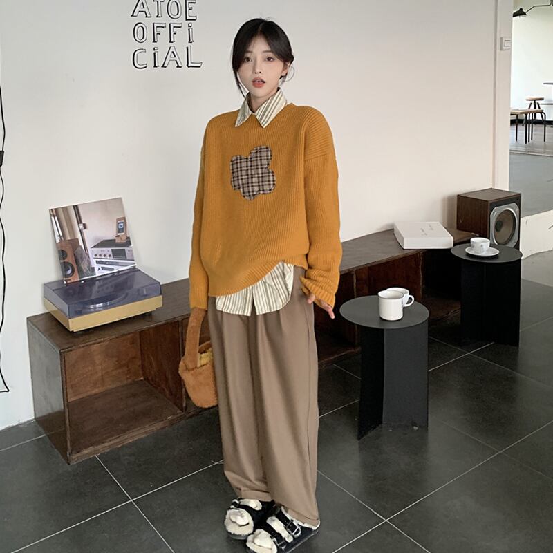 イエローセーター スプリングスタイルスタンダードルーズ レトロ 春物 SPM59442491702