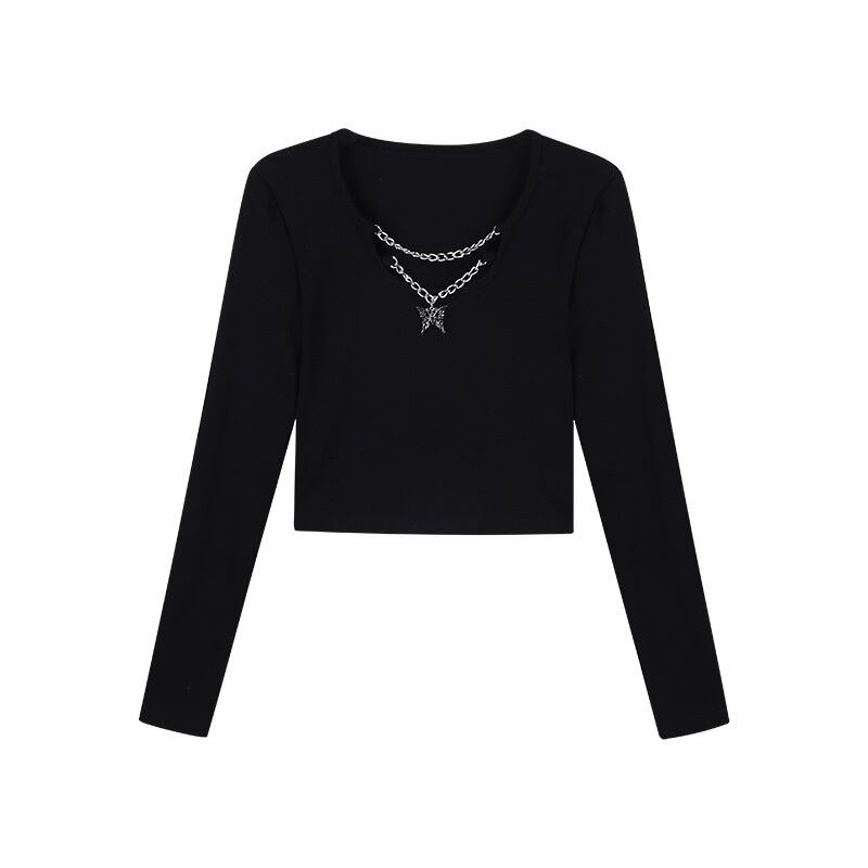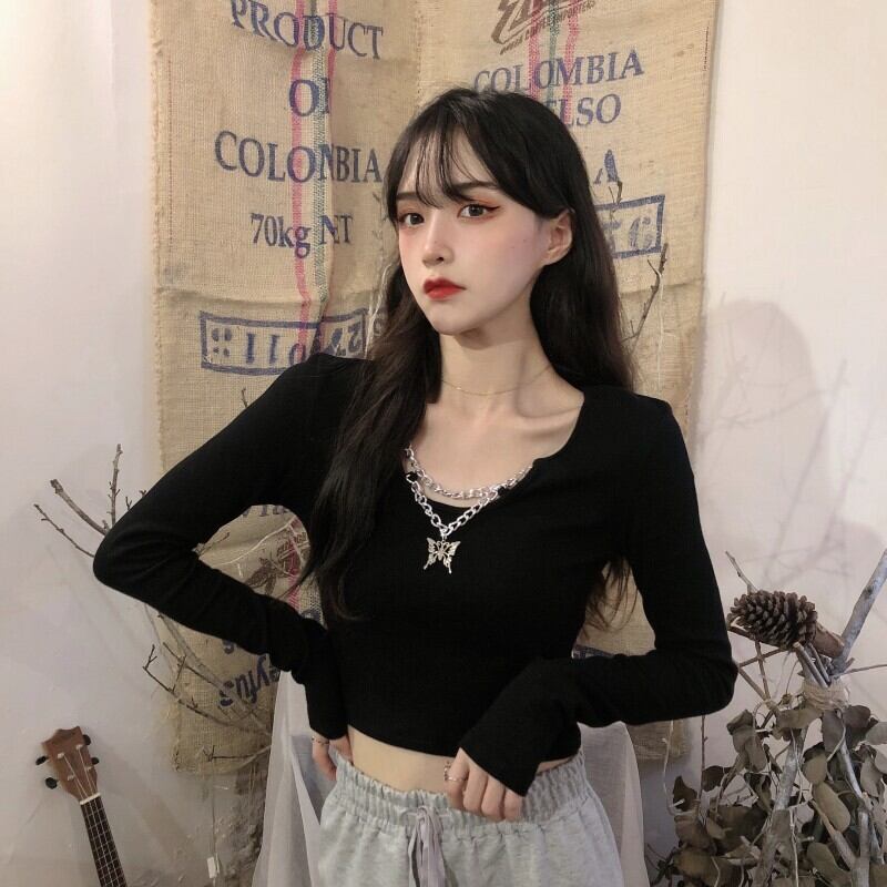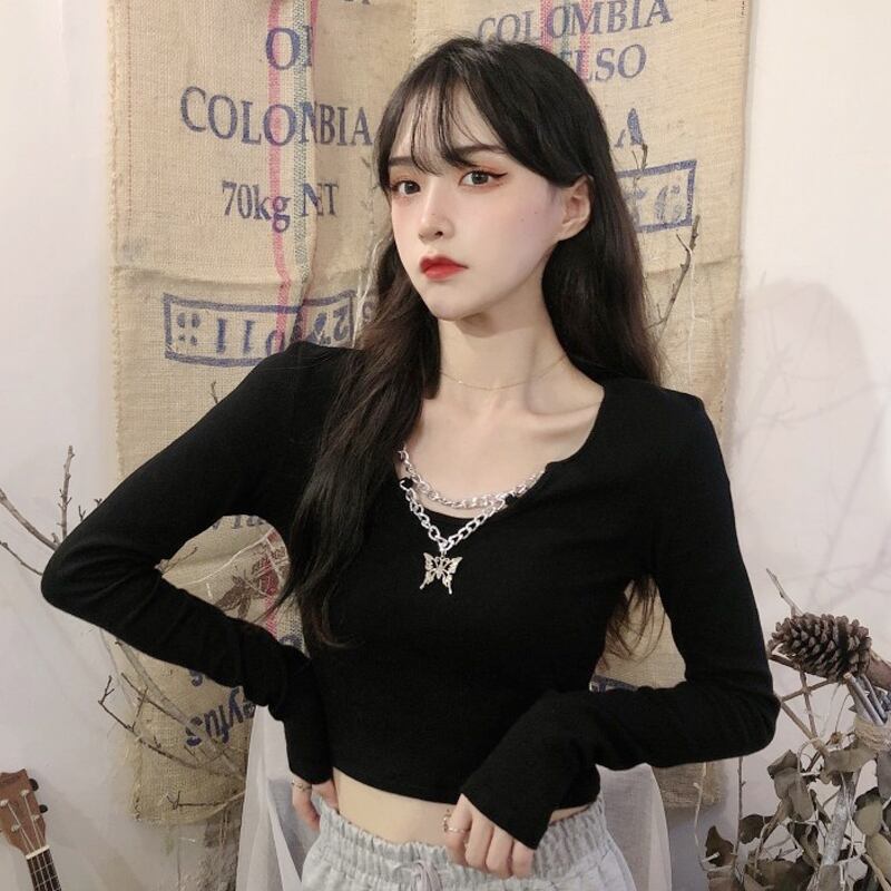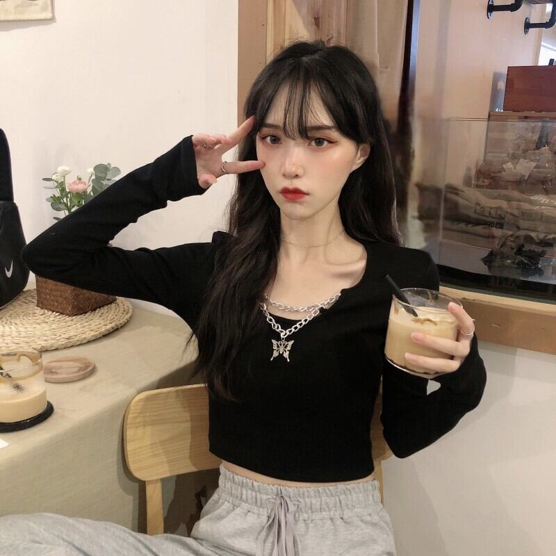 ショートトップス スプリングスリムブラック長袖スリーブゆったりシャツ ロング 大人ガーリー スウィート キュート カジュアル 春物 ピュア SPM35465693601