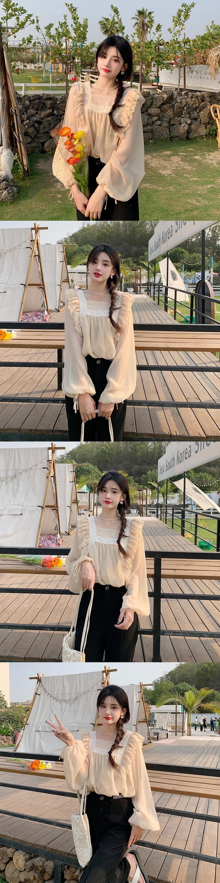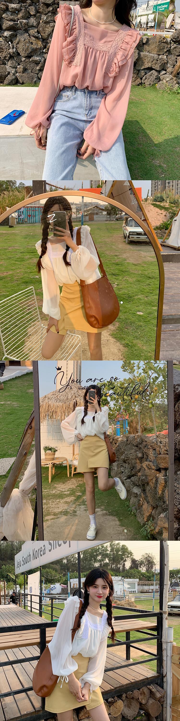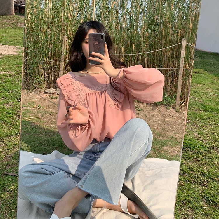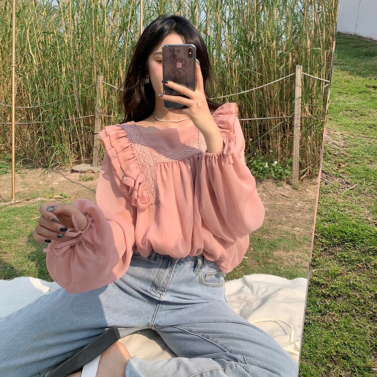 シフォントップス スプリングシャツ ピンク 大人ガーリー スウィート キュート カジュアル 春物 スクウェア SPM61217183897