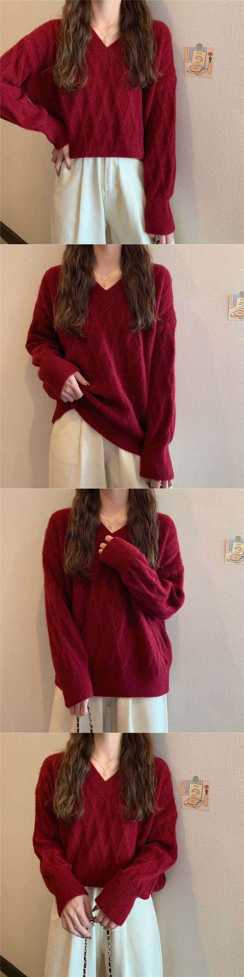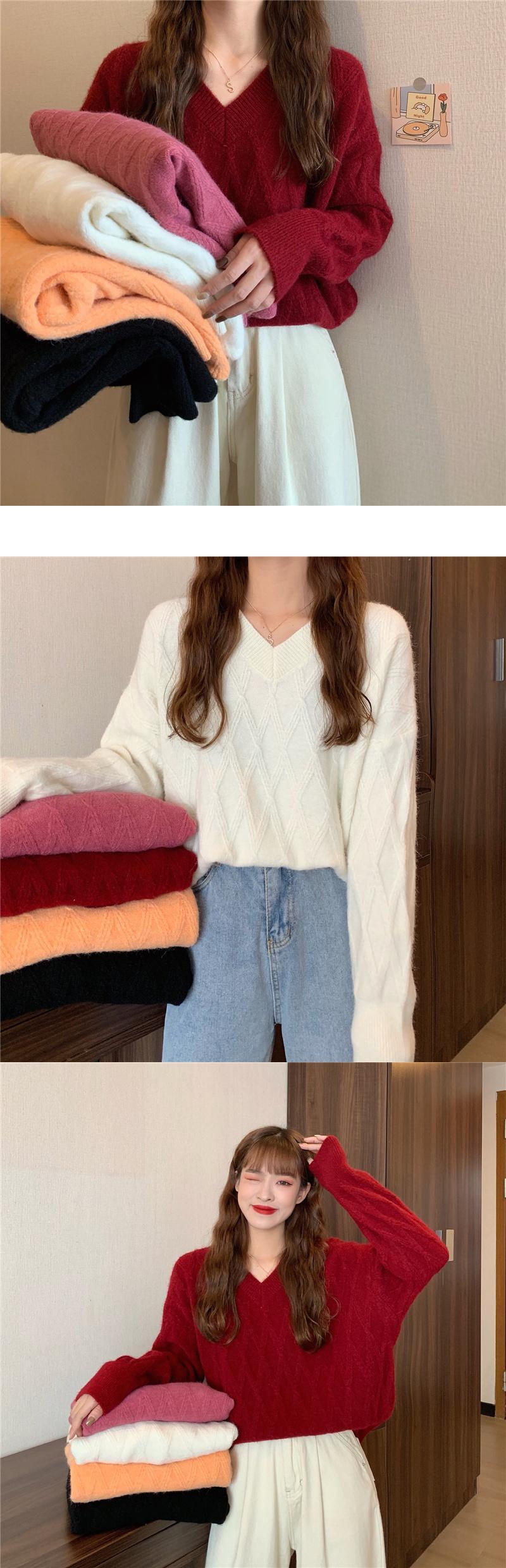 レッドウールスプリング秋物スタイルVネックゆったり 春物 オータム SYJ76277726490
